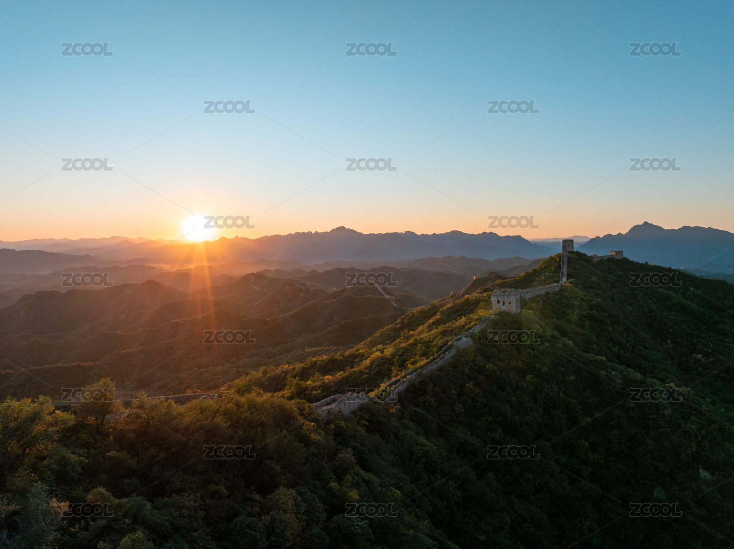 祖國山河,萬里長城晚霞航拍
