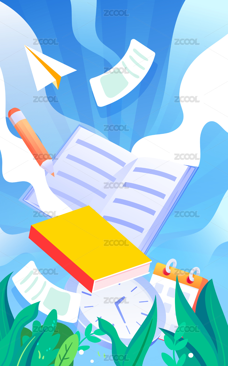 卡通學生開學季讀書考研學習畢業(yè)季矢量插畫