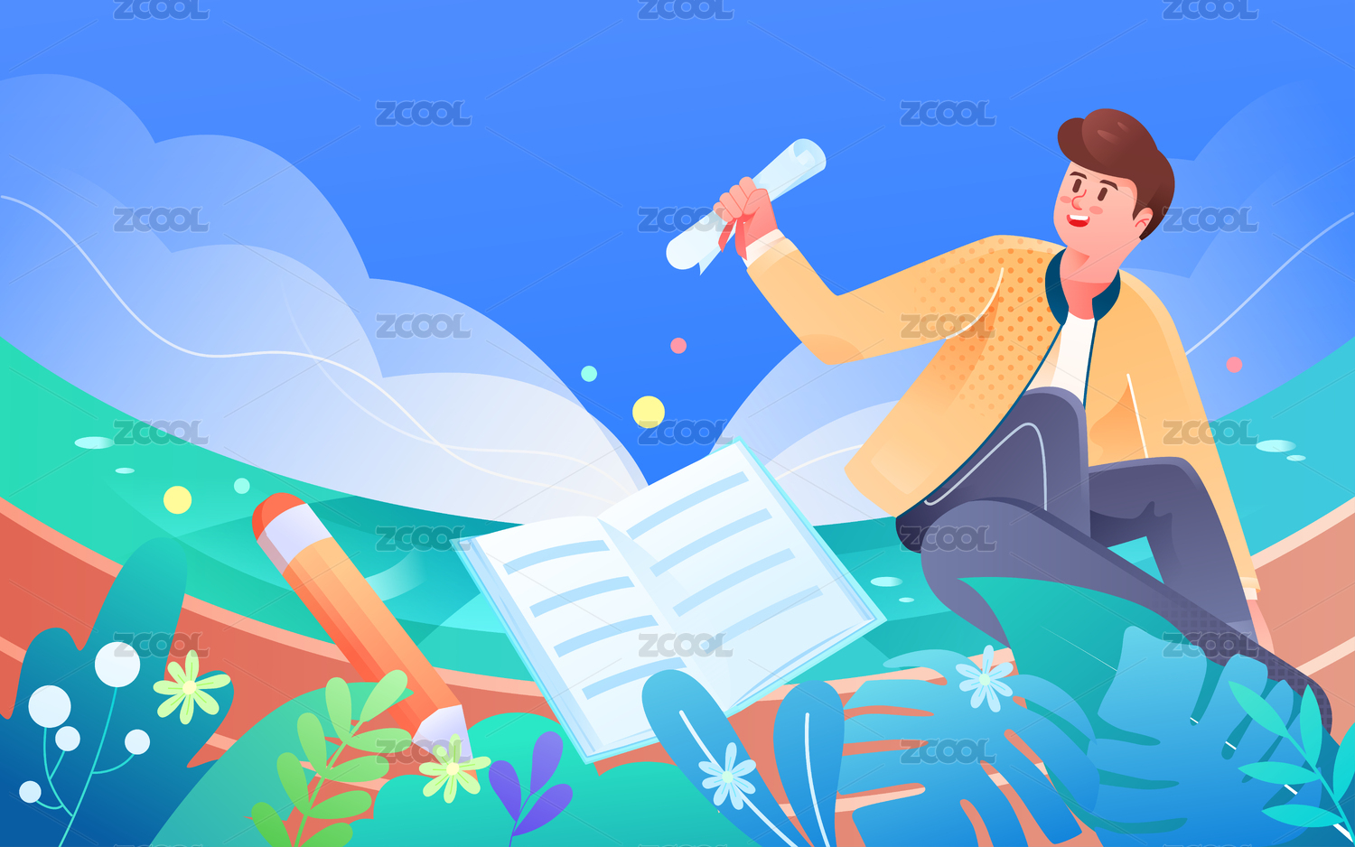 學生穿著學士服高考畢業(yè)生考研學習教育插畫