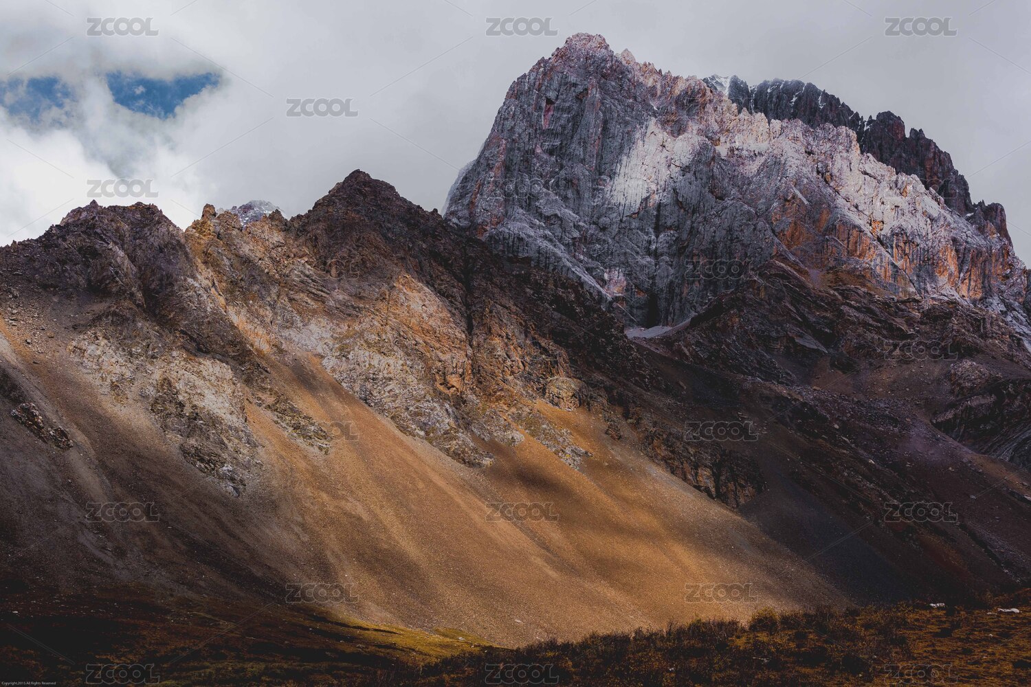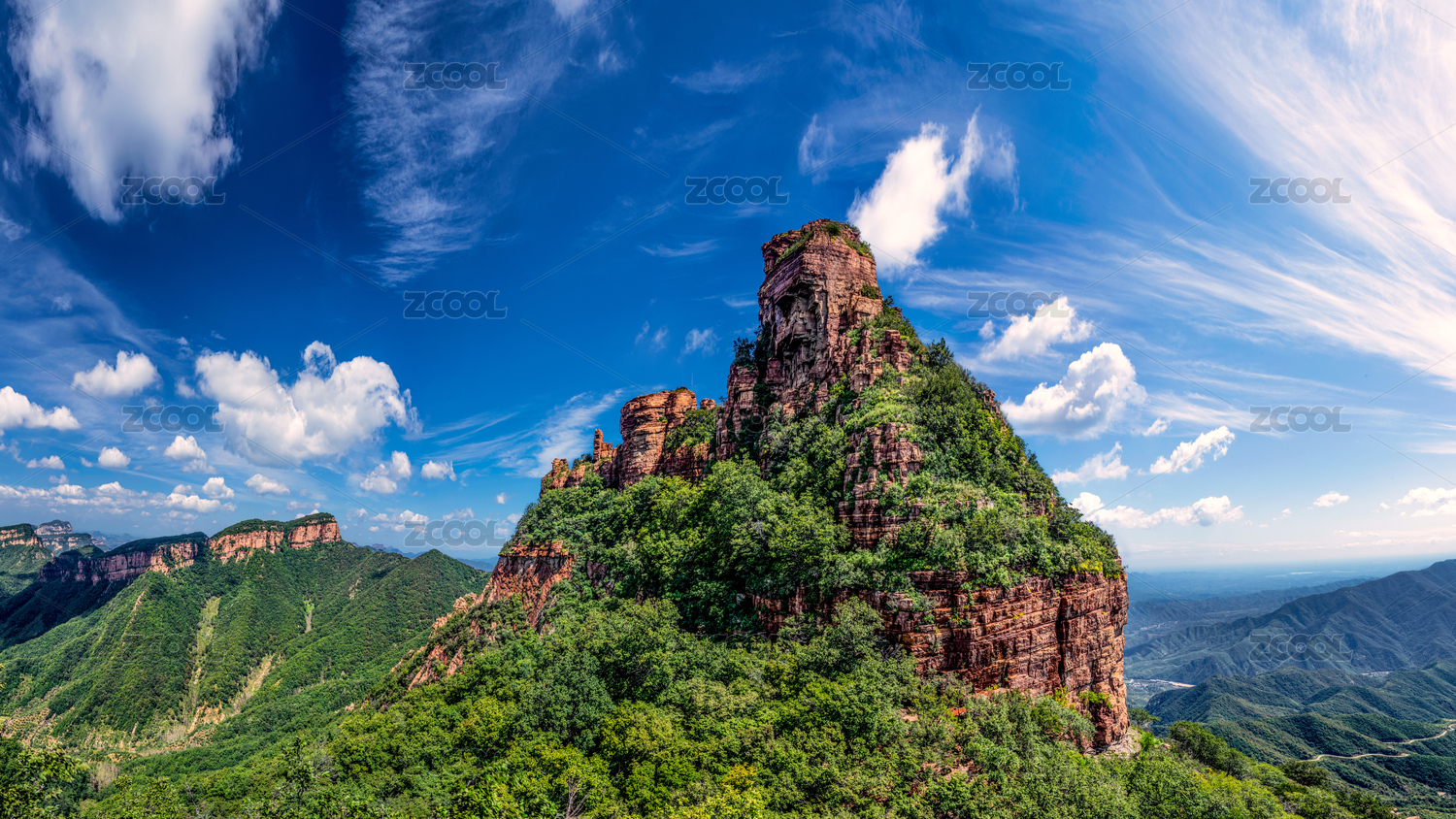鋒利的山峰,背景是冰藍(lán)色的天空
