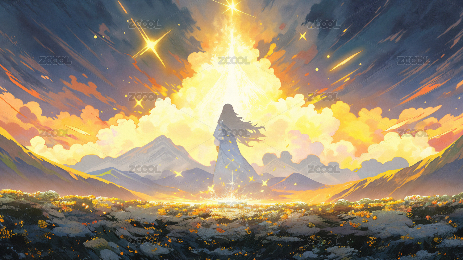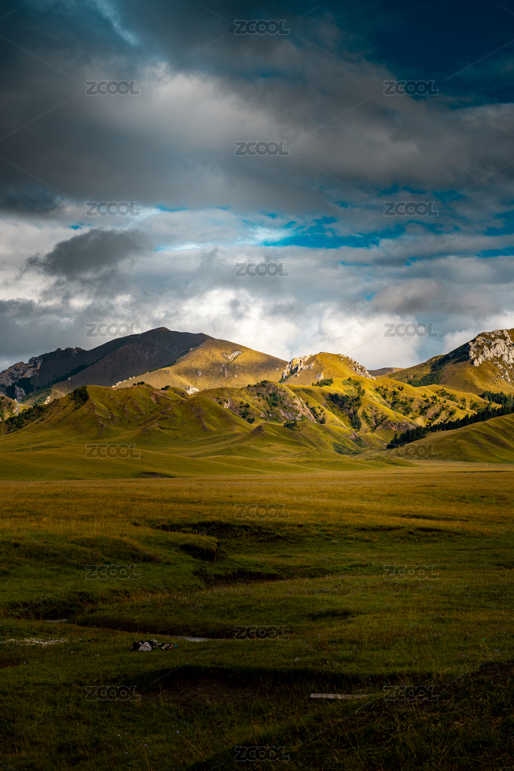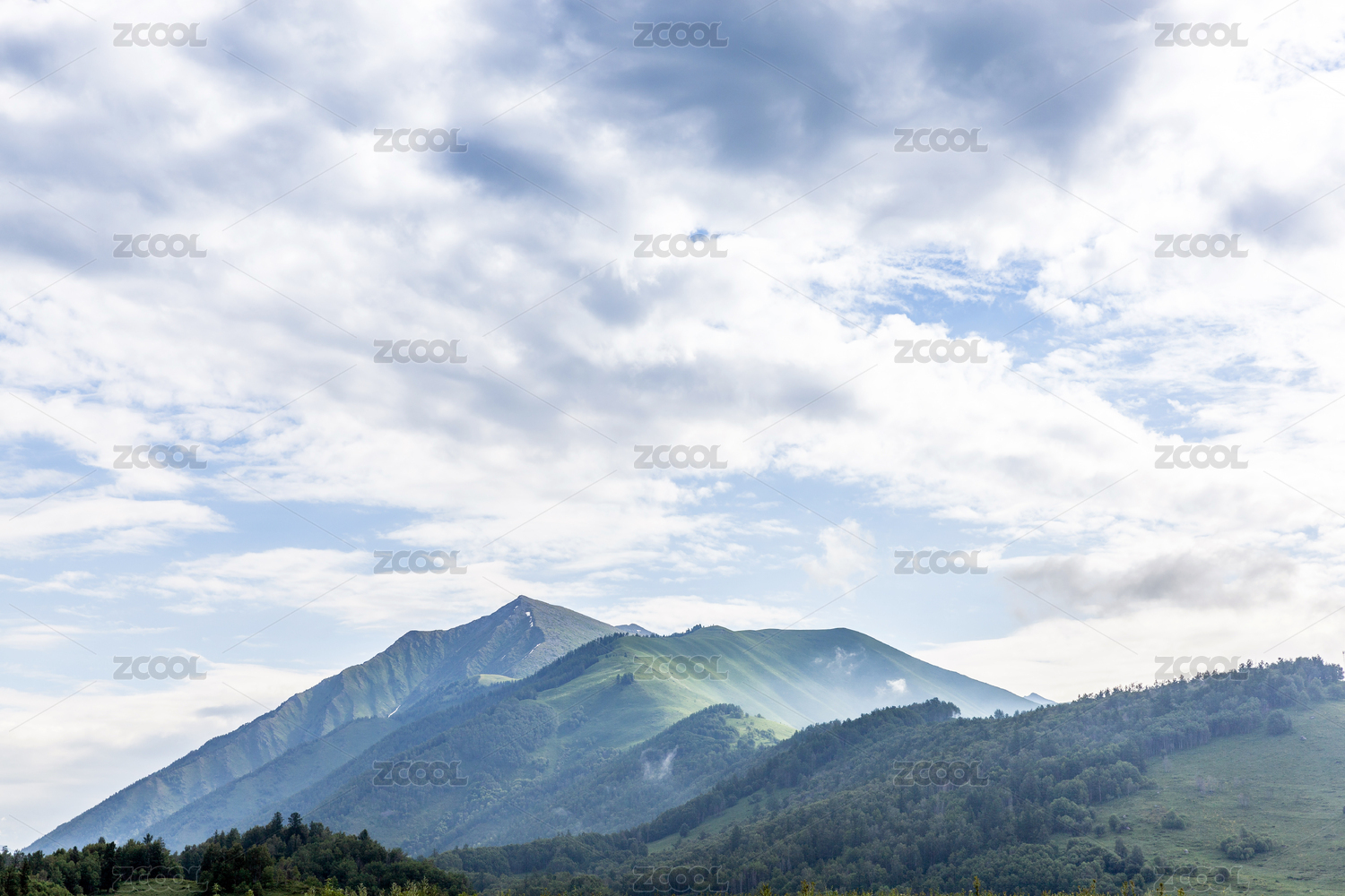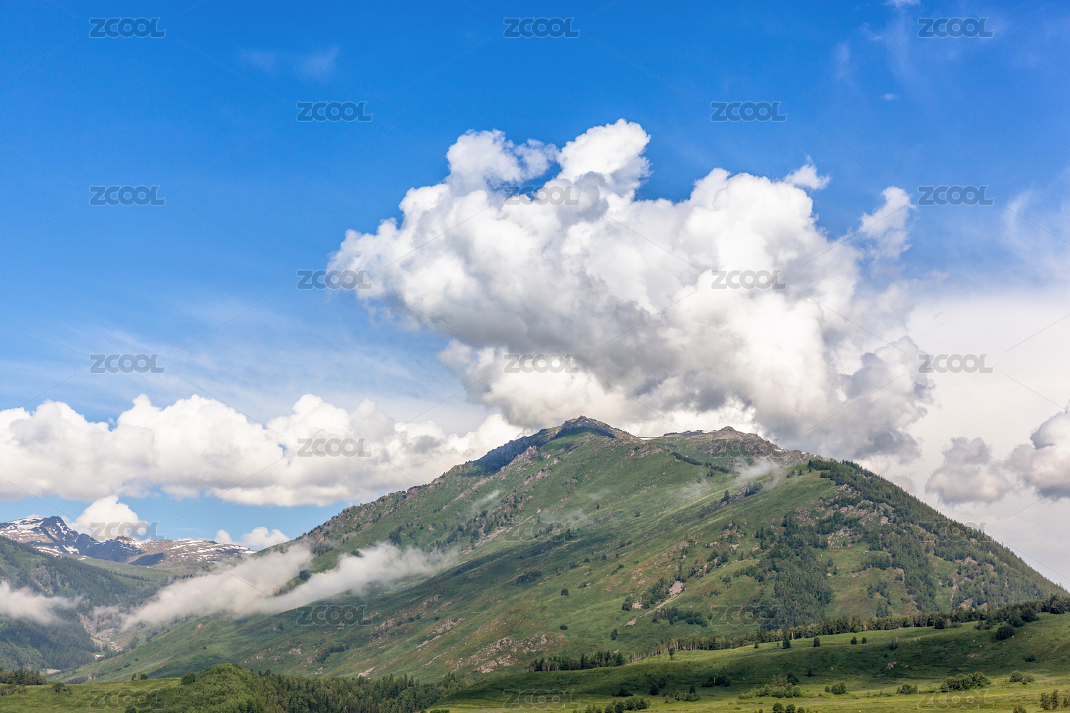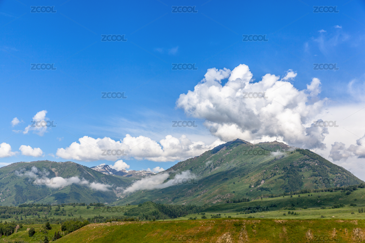 四川省阿壩州若爾蓋縣藍(lán)天白云草原山峰