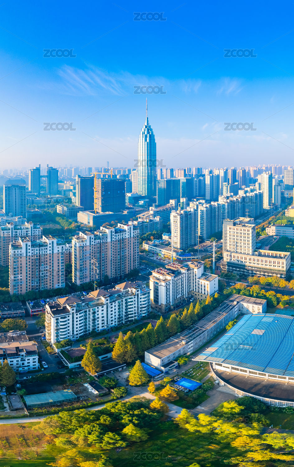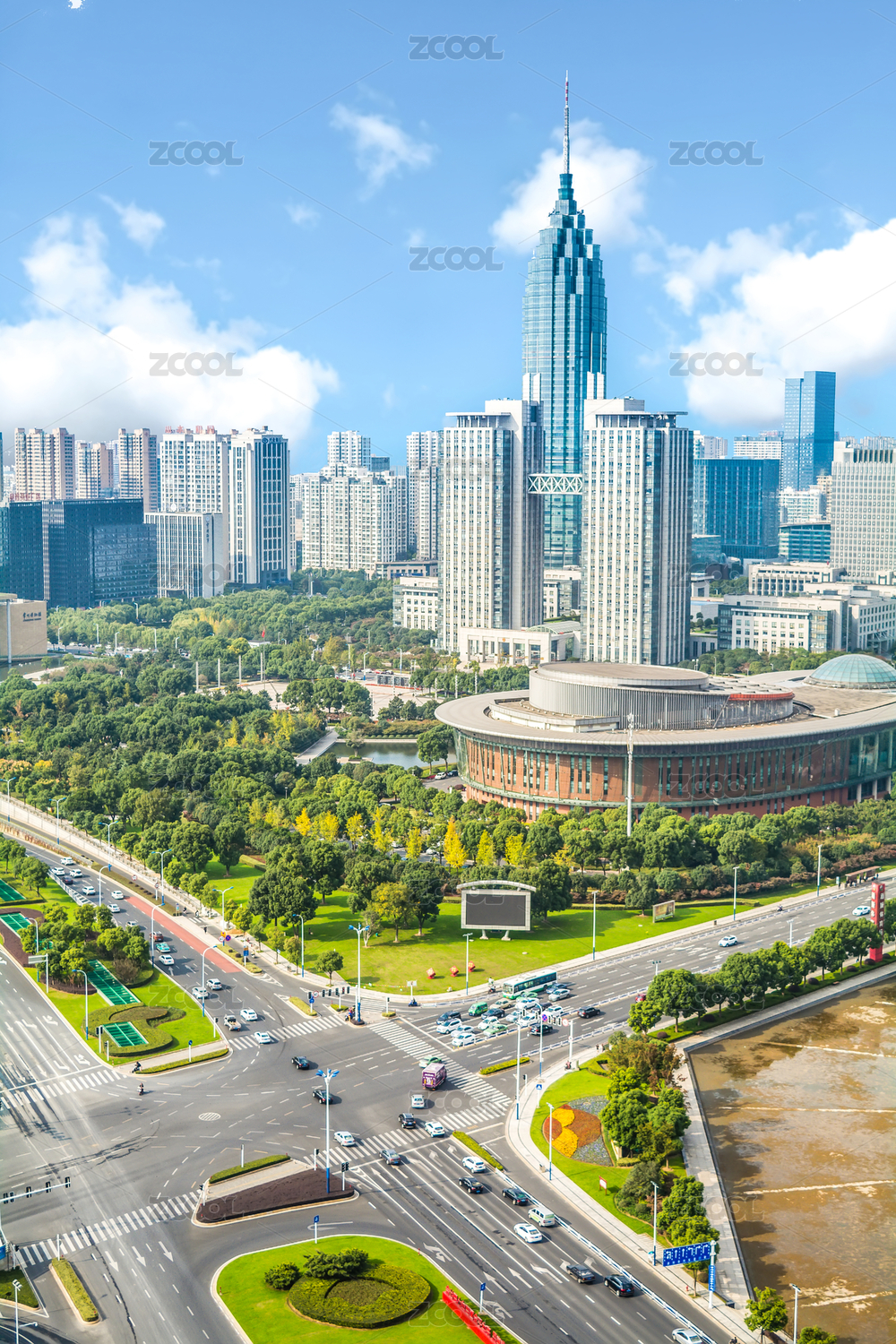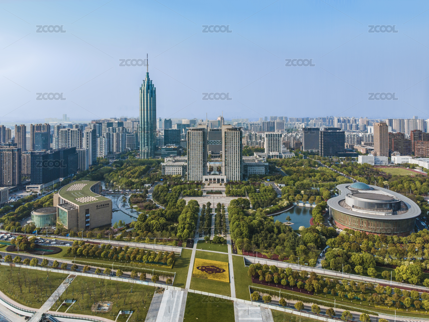 航拍秋天的中國江蘇常州文化廣場、傳媒大廈、奧體