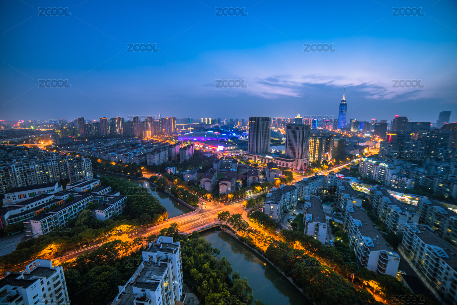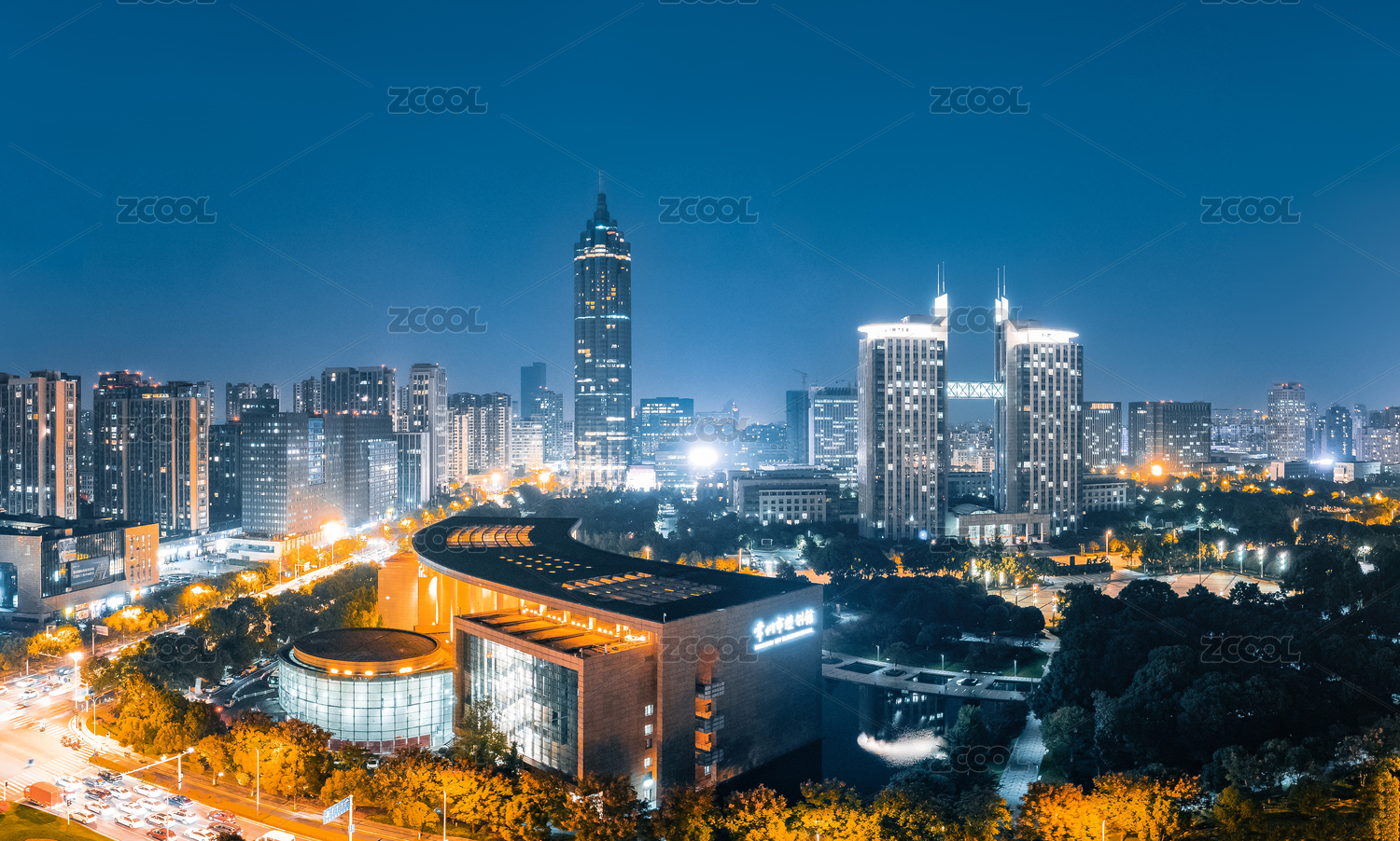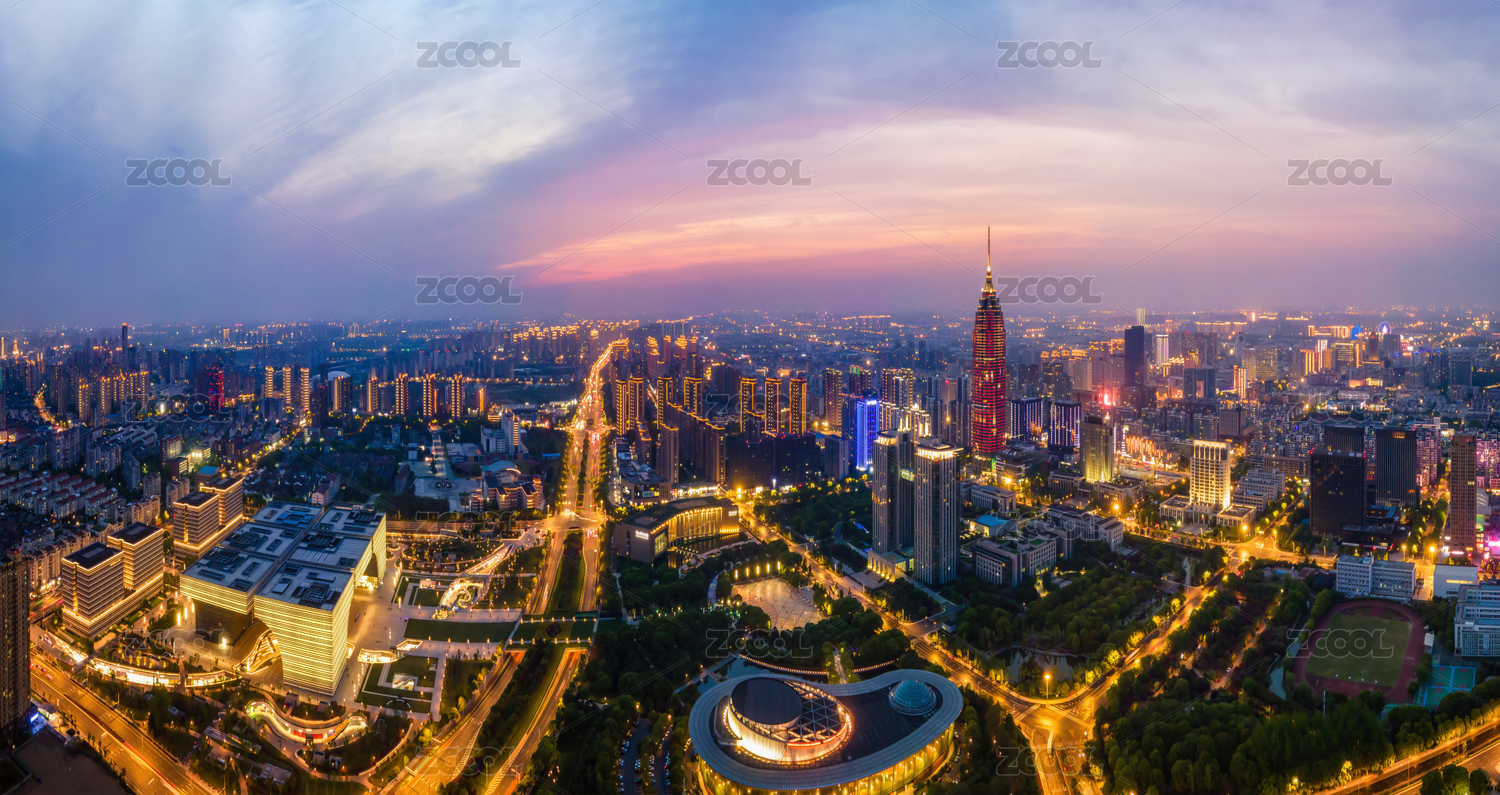 航拍秋天的中國江蘇常州文化廣場、傳媒大廈、奧體