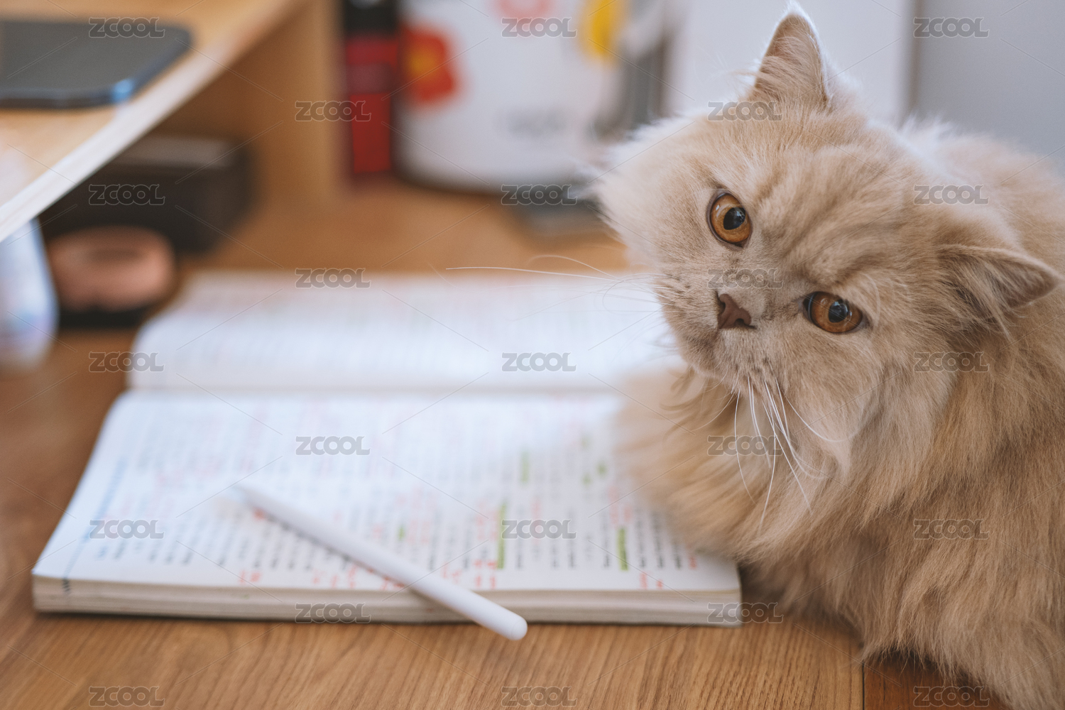 英國長毛貓正在看書學(xué)習(xí),為了考得好成績