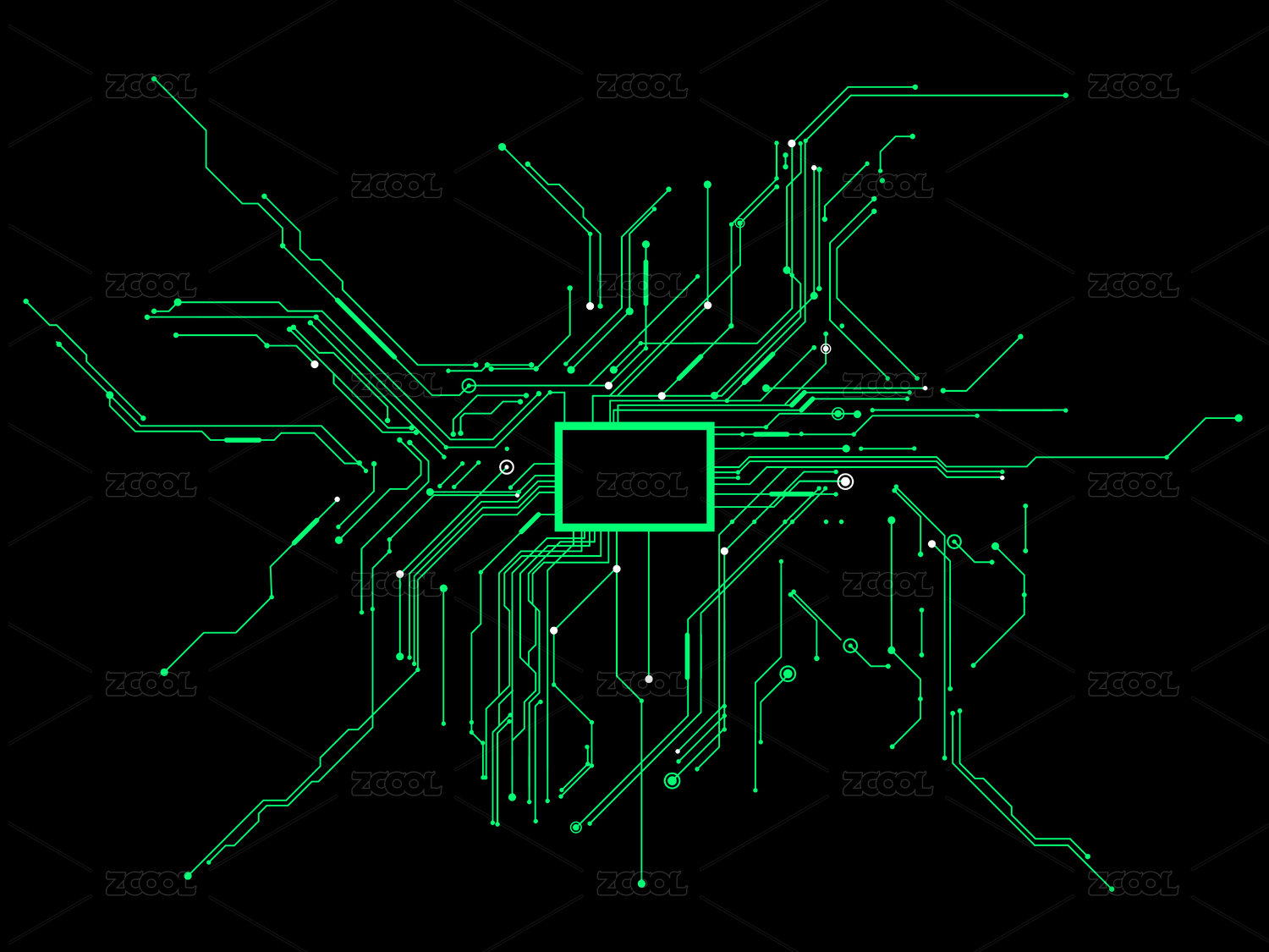 抽象的電路圖、綠色發(fā)光科技感圖片、矢量電腦芯片。