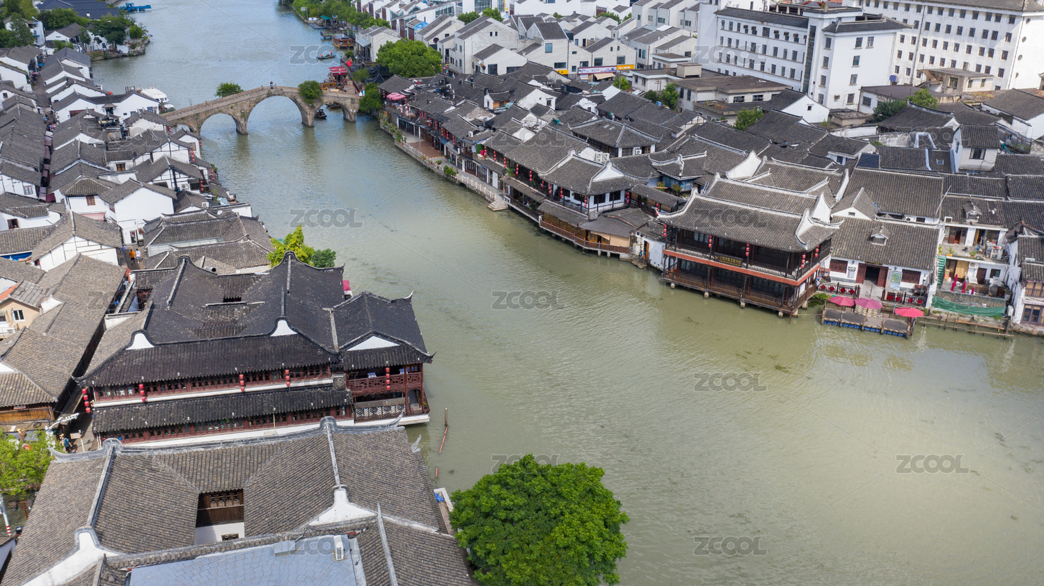 中國(guó)上海朱家角古鎮(zhèn)風(fēng)光全景