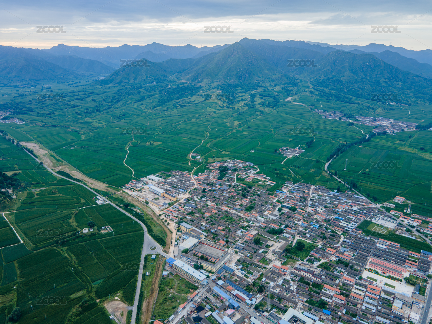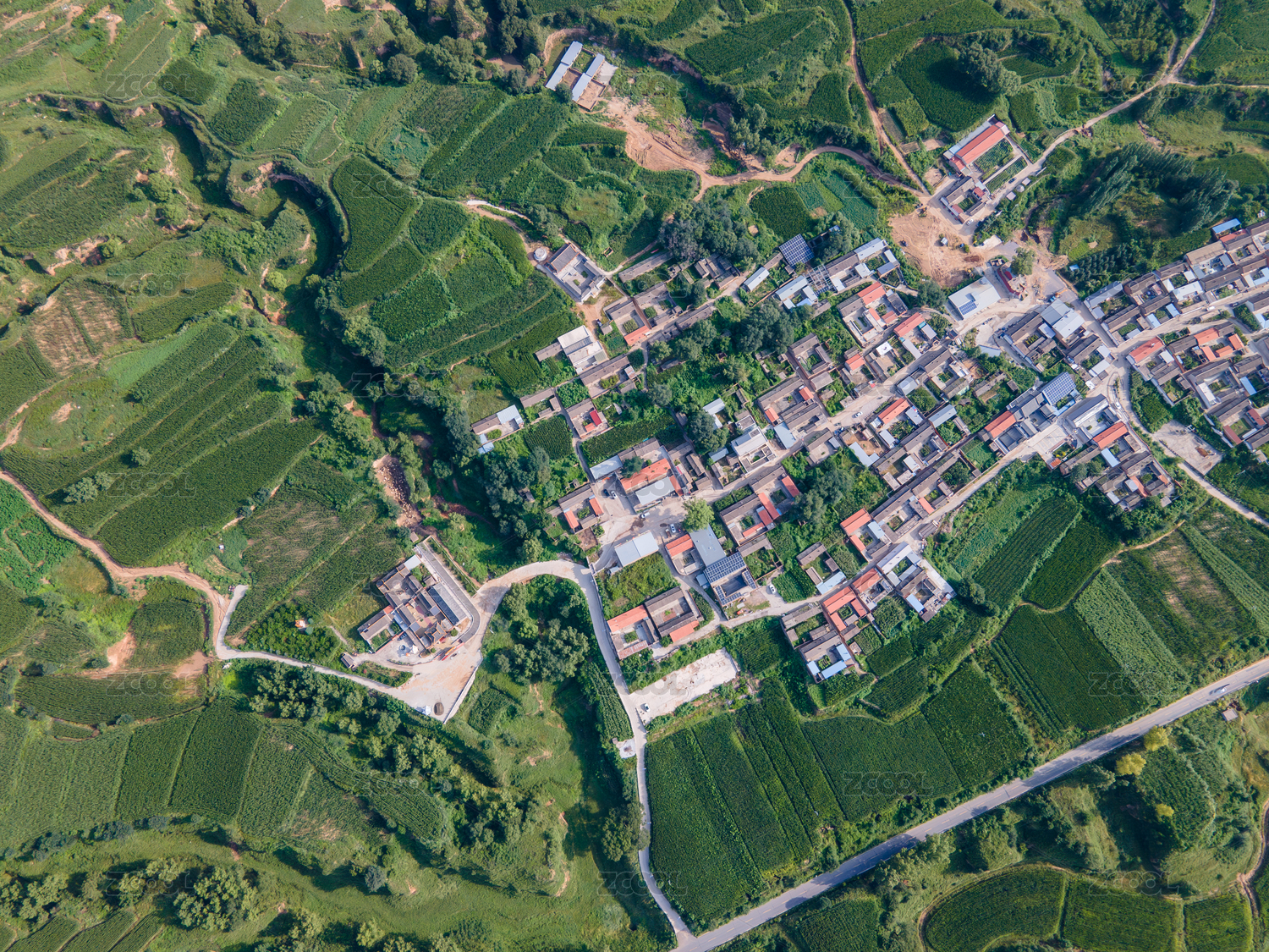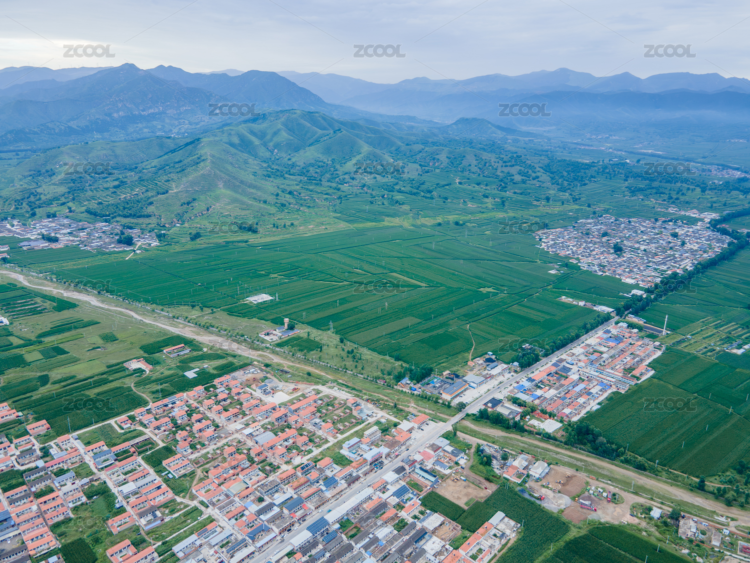 航拍中國華北平原的村鎮(zhèn)和耕地