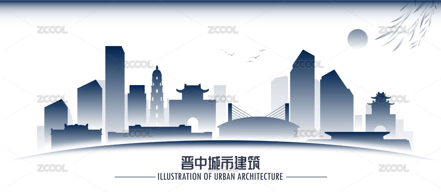 晉中城市地標(biāo)建筑國(guó)潮矢量插畫