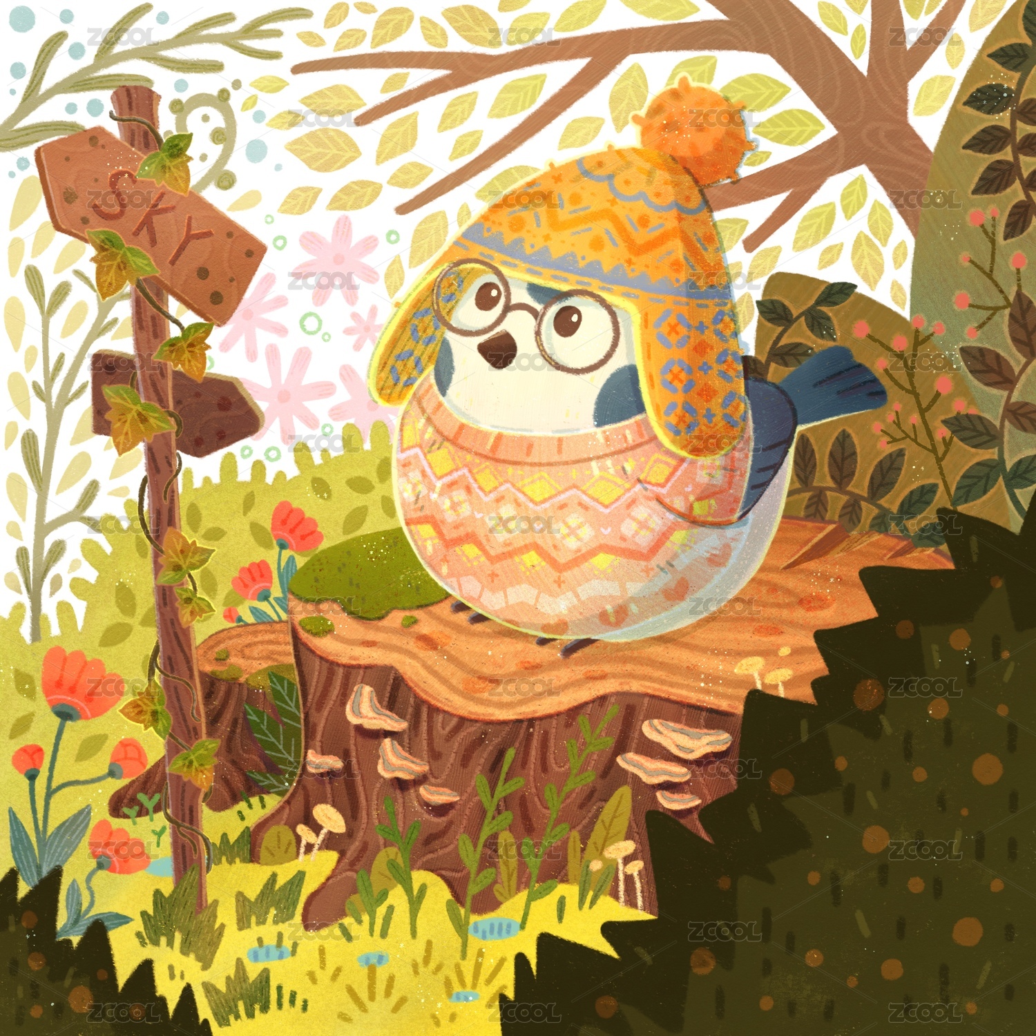 向天空進發(fā)即將遠航的小鳥兒童插畫