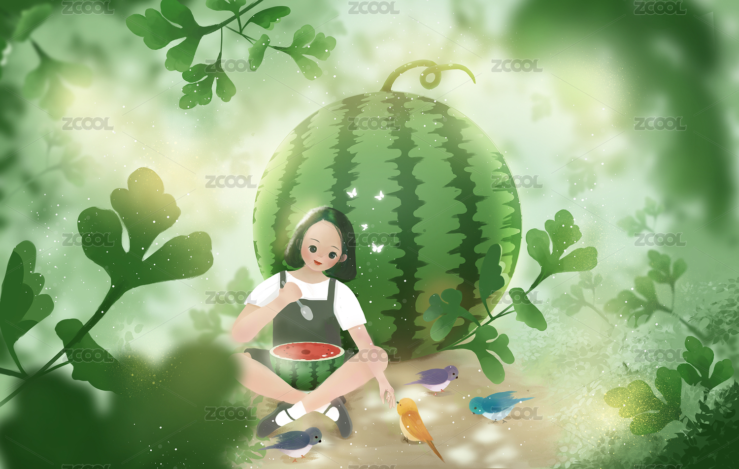 早晨太陽出來了照耀著整片森林,小鳥在草叢中飛舞插畫背景海報