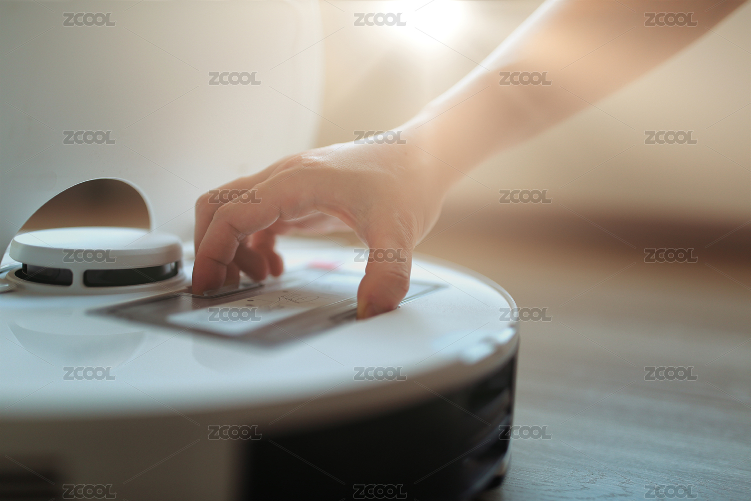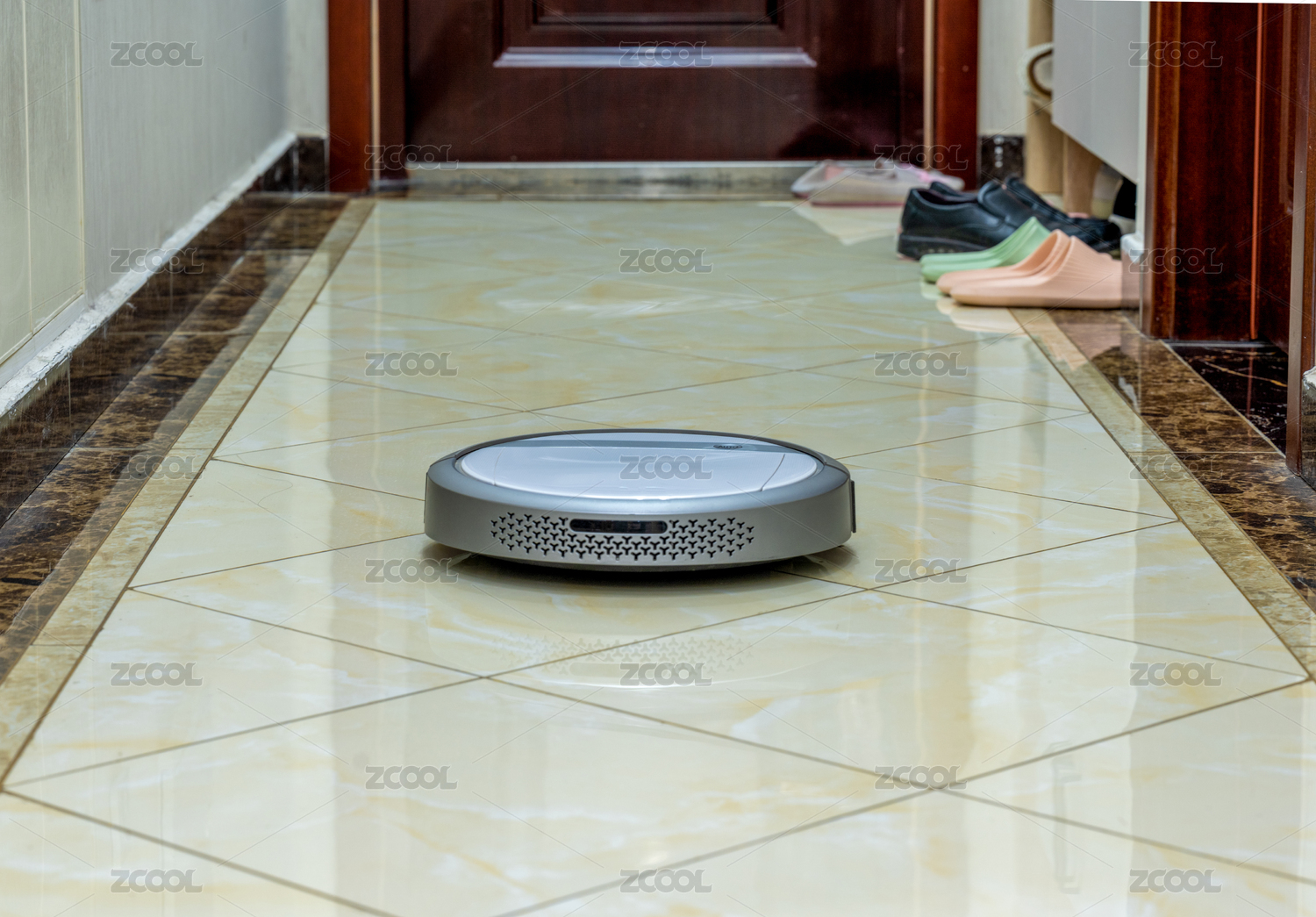 瓷磚地板上的掃地機(jī)器人清掃衛(wèi)生