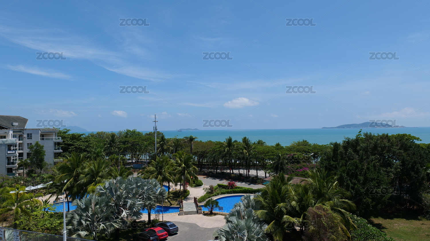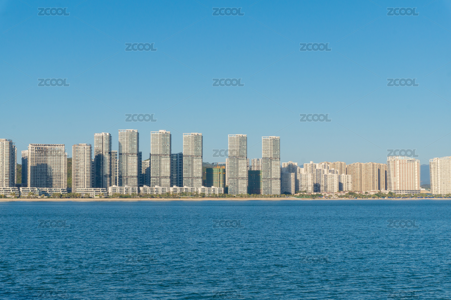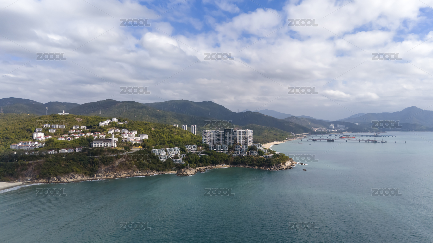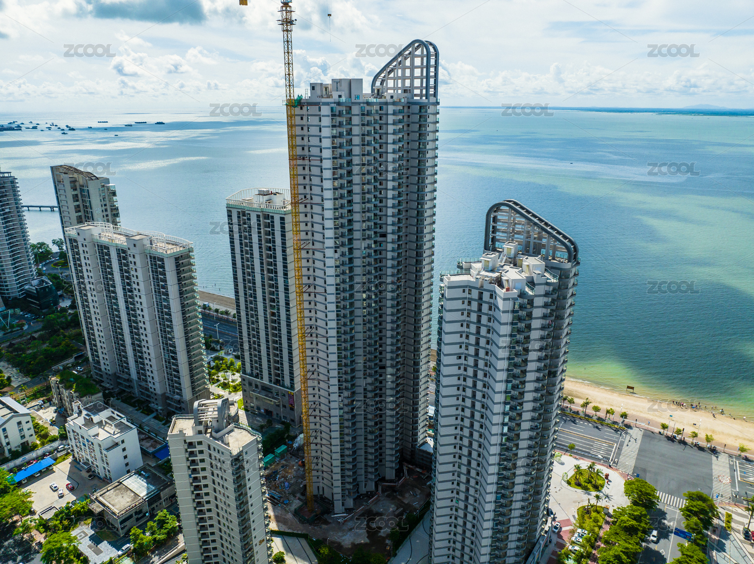 航拍海南??谛虏簫u海景房及海濱別墅建筑群