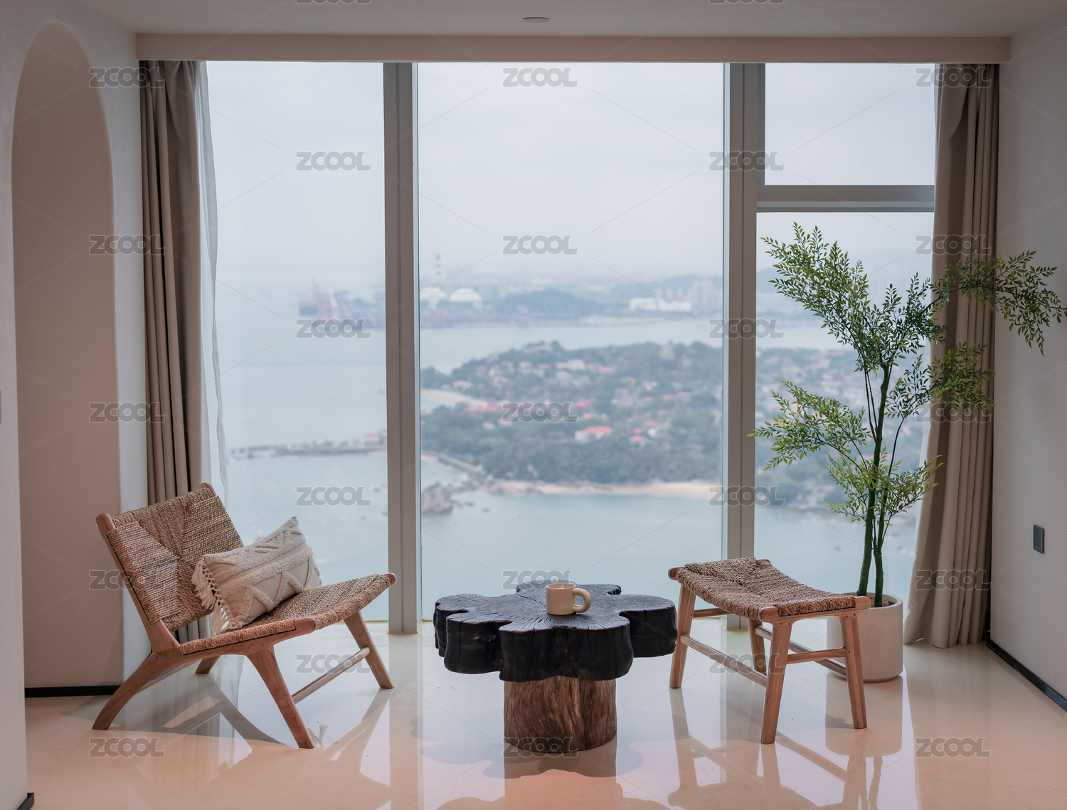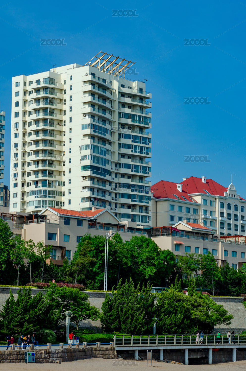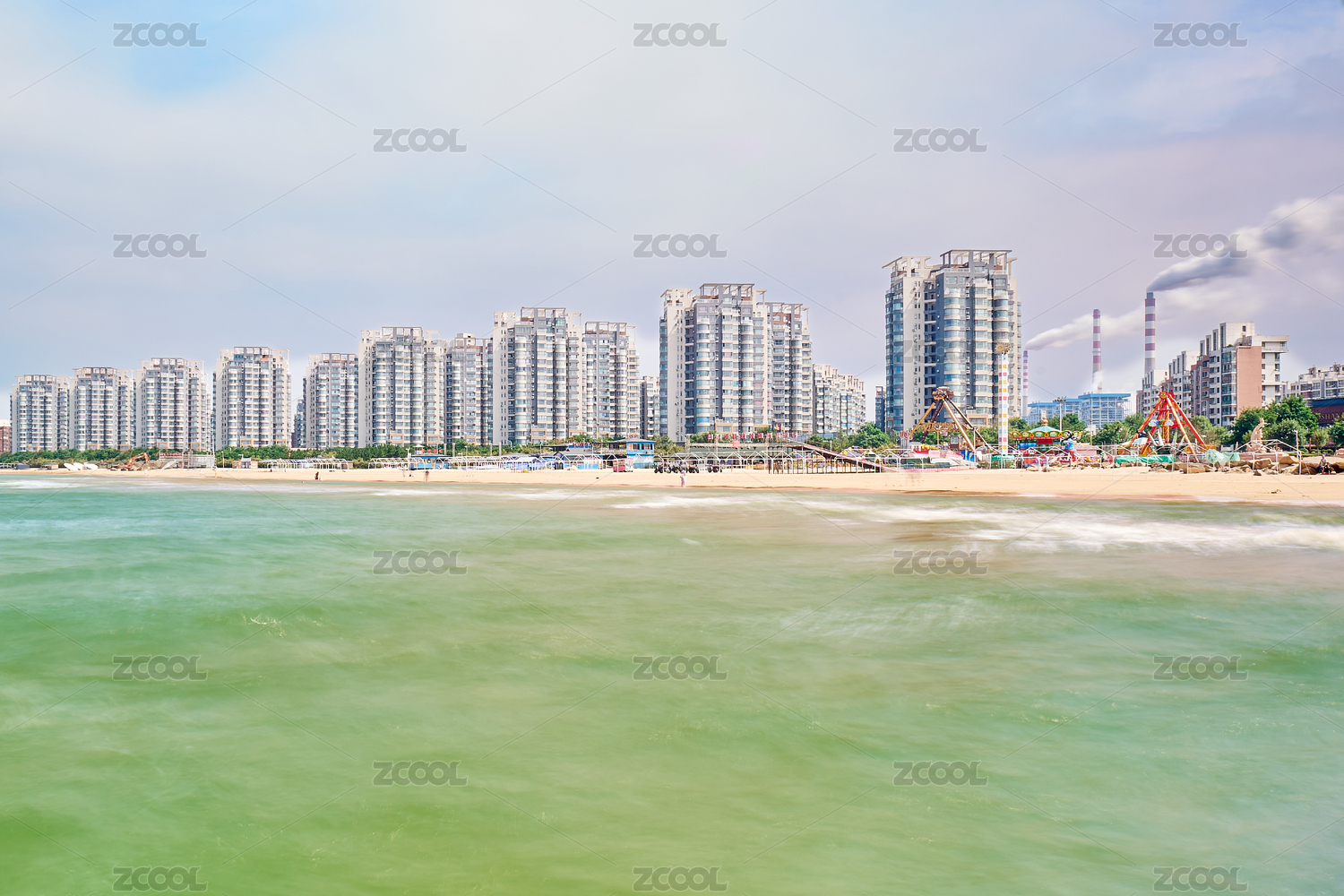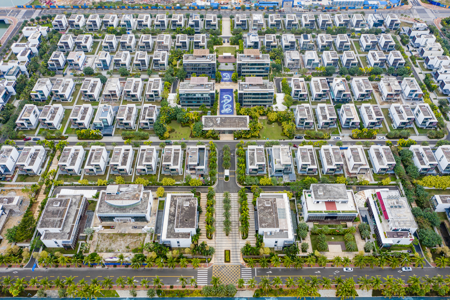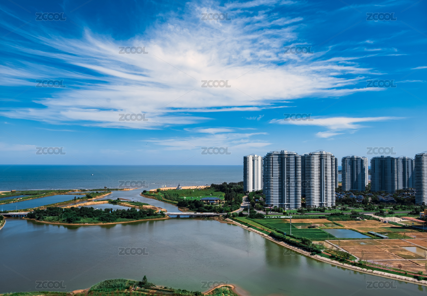 航拍海南??谛虏簫u海景房及海濱別墅建筑群
