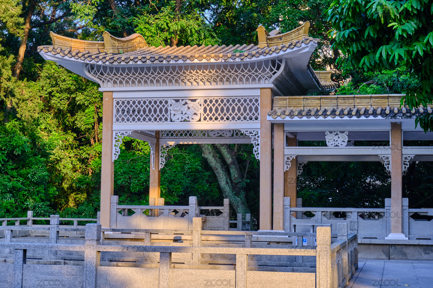 廣州麓湖公園湖畔涼亭中式傳統(tǒng)建筑