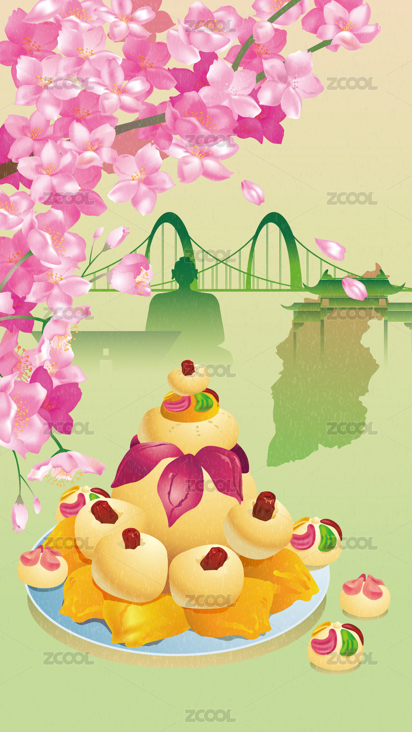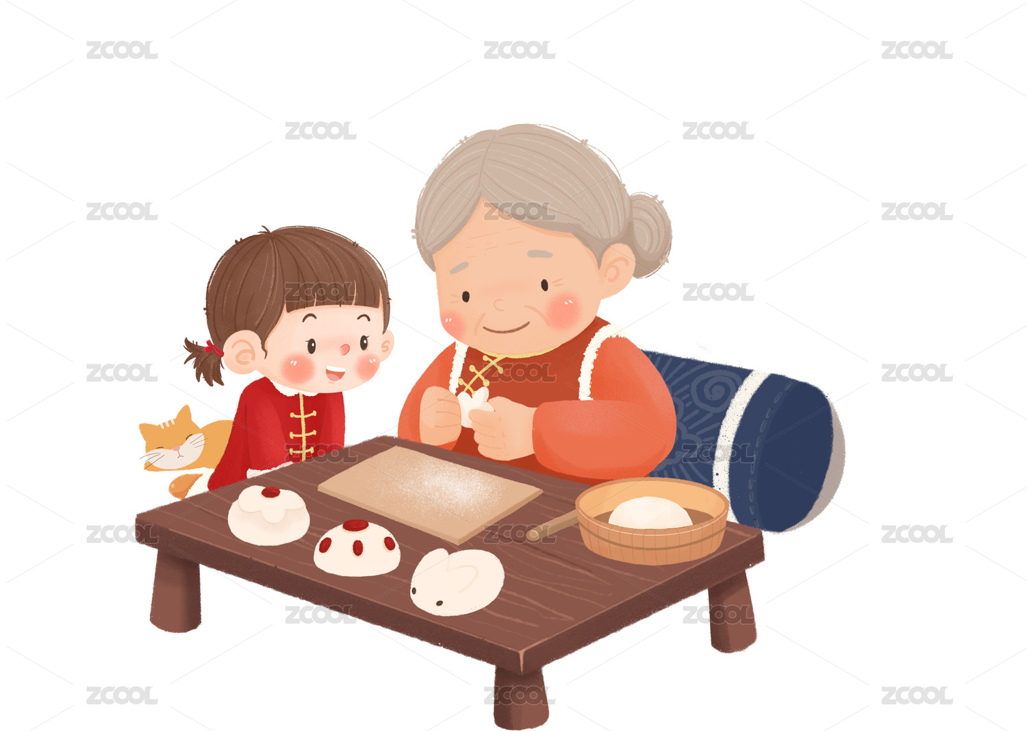 中國龍年春節(jié)龍形花饃糖畫小孩青花瓷插畫