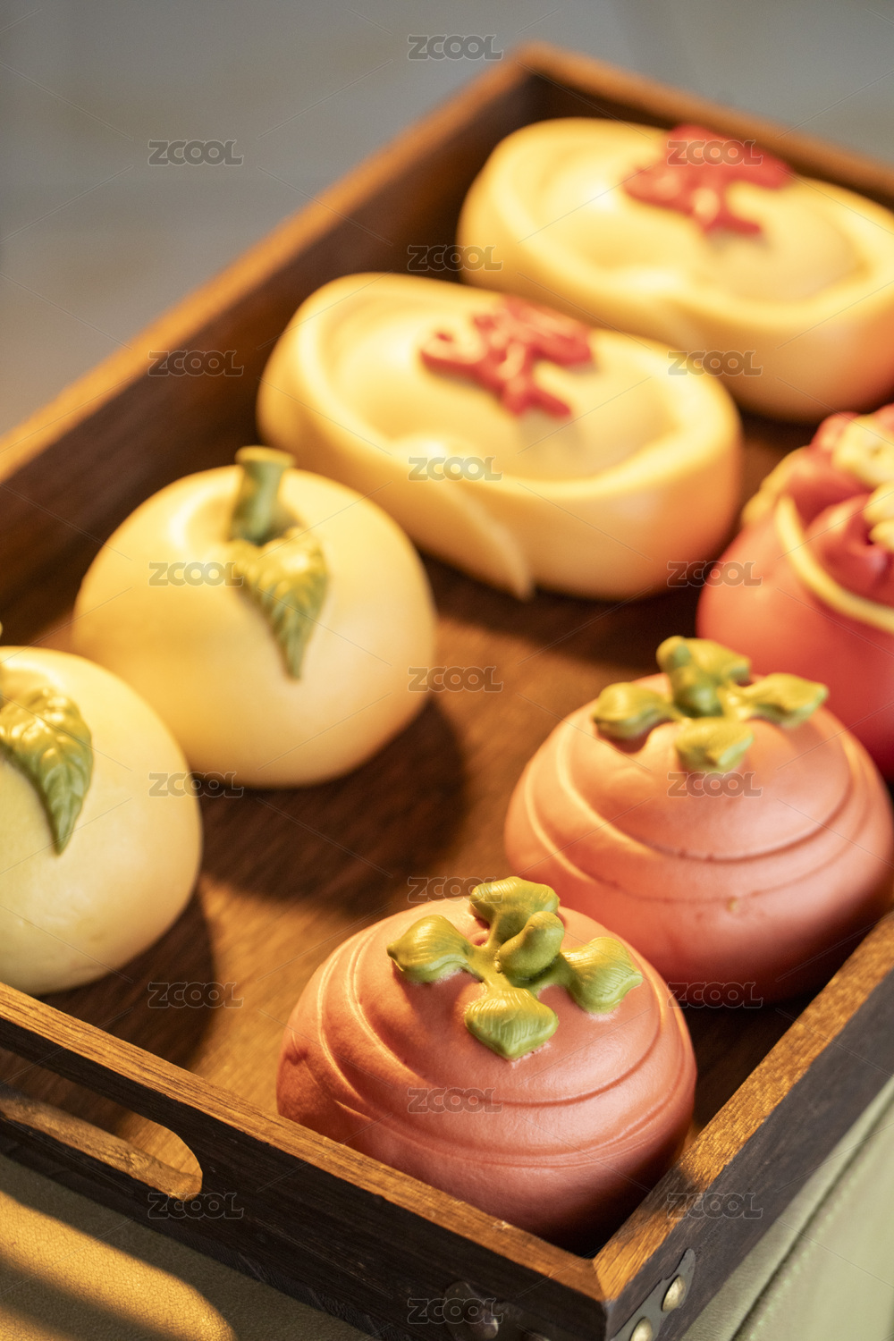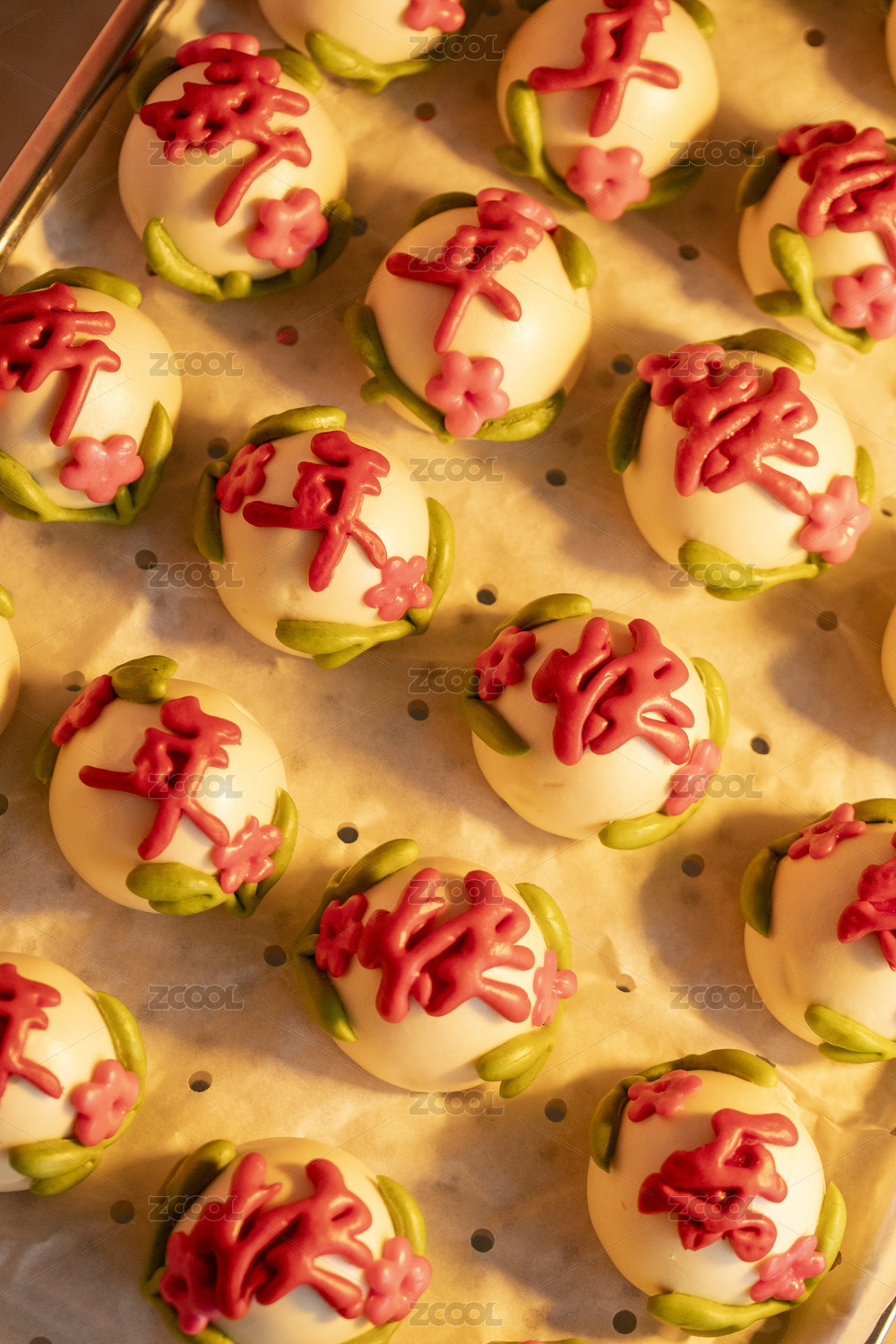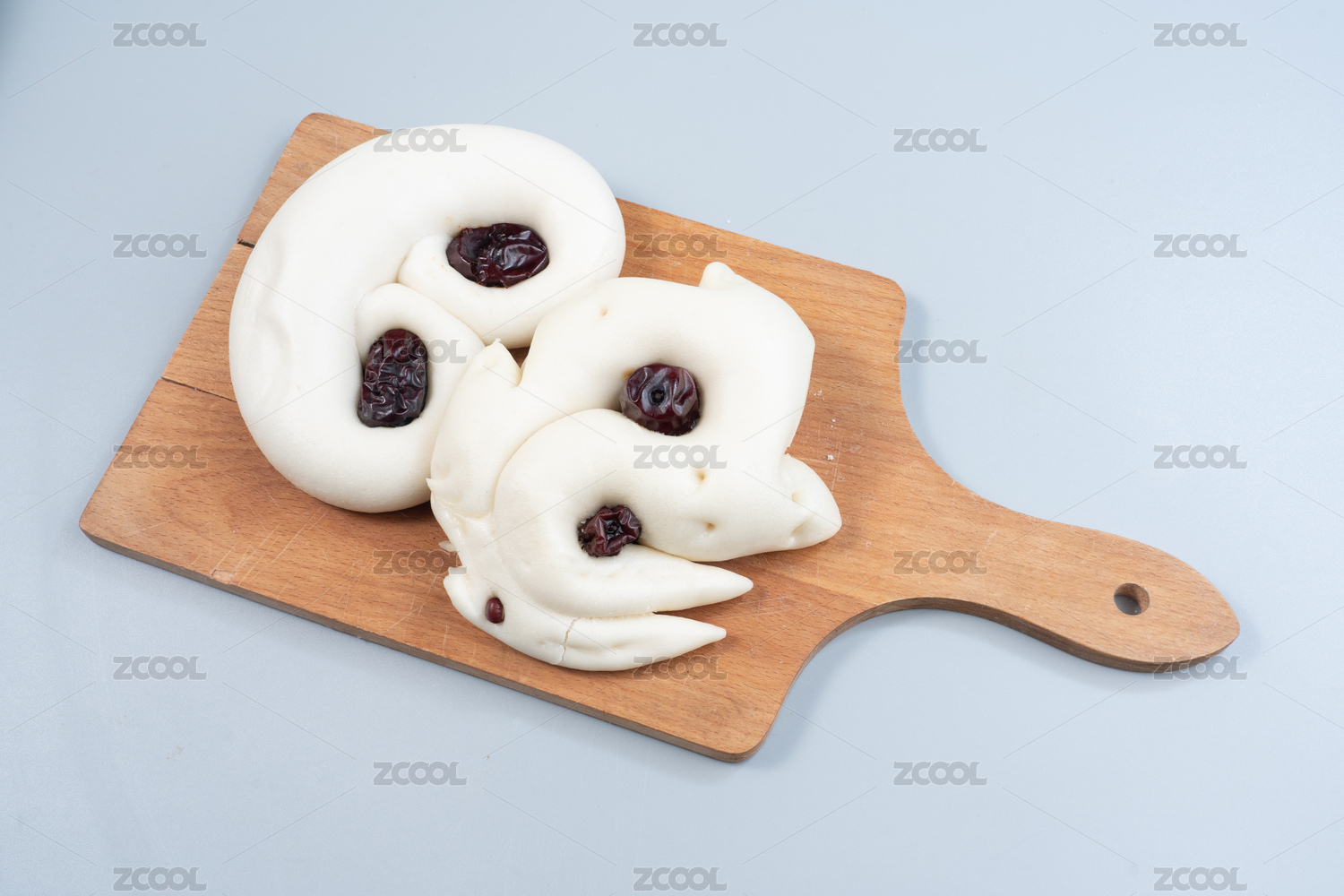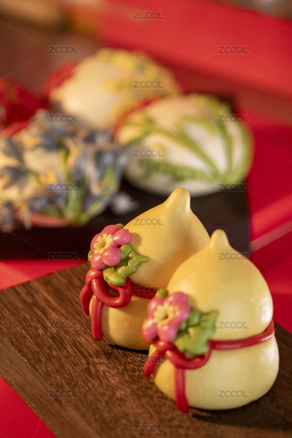 傳統(tǒng)面食老鼠花饃特寫古窗欞木桌面背景