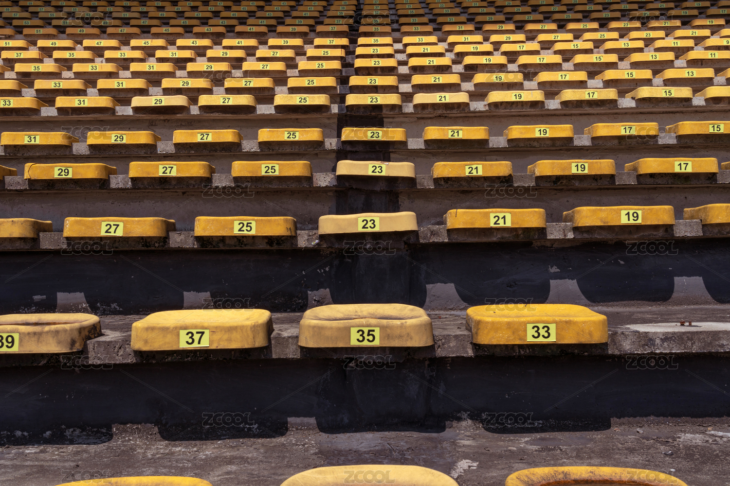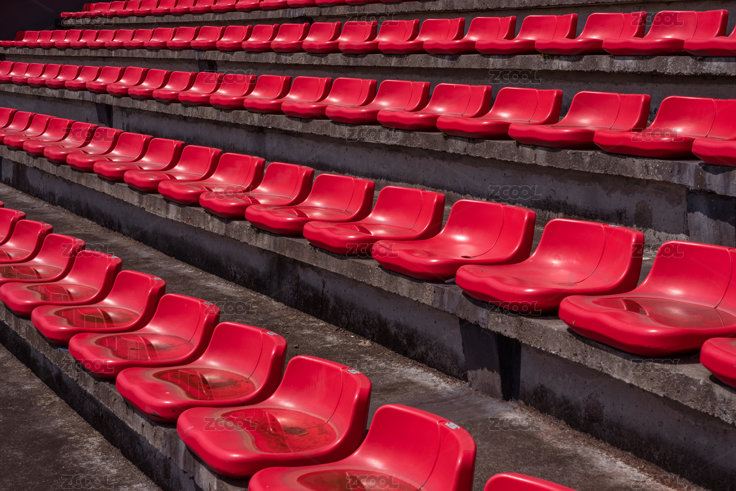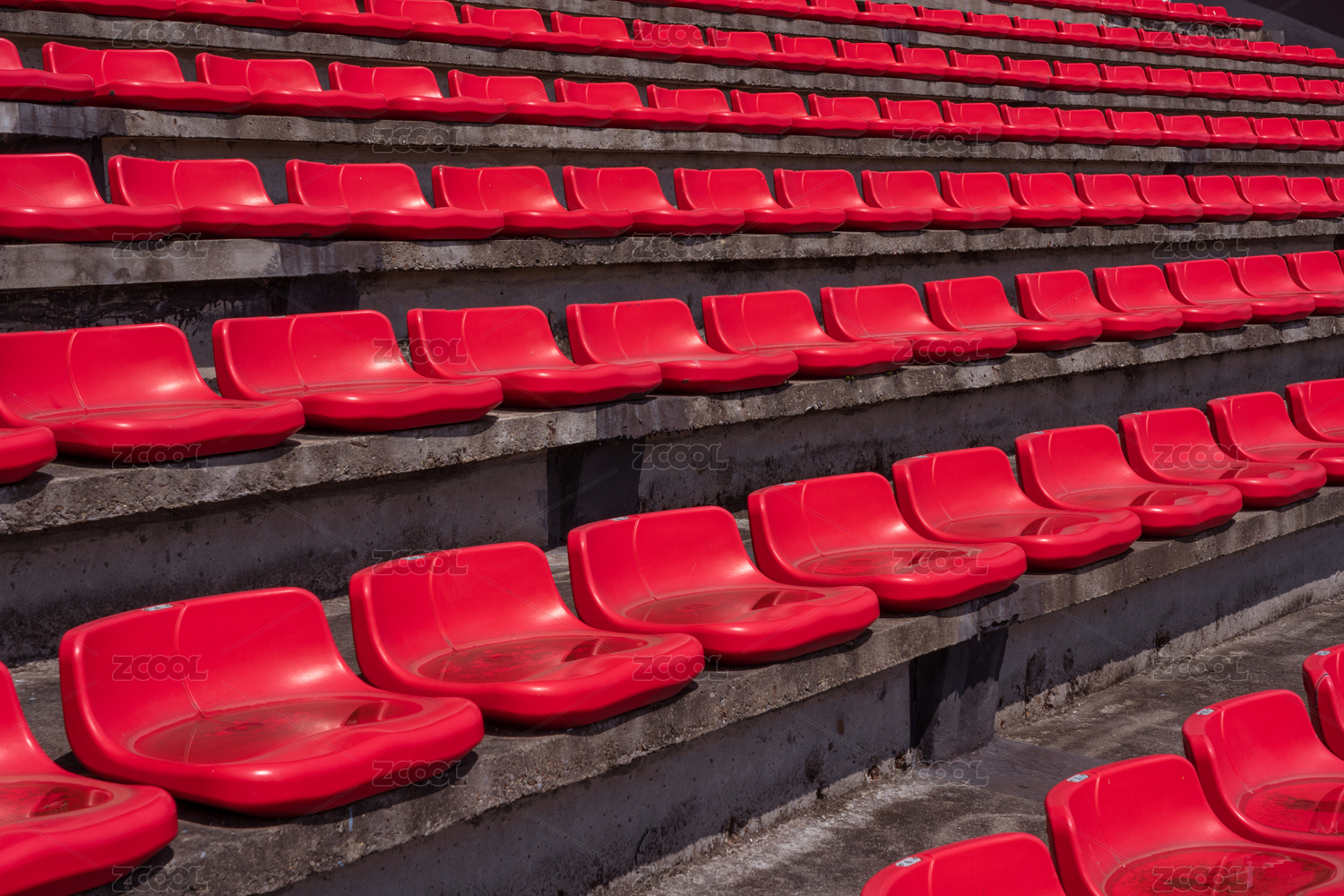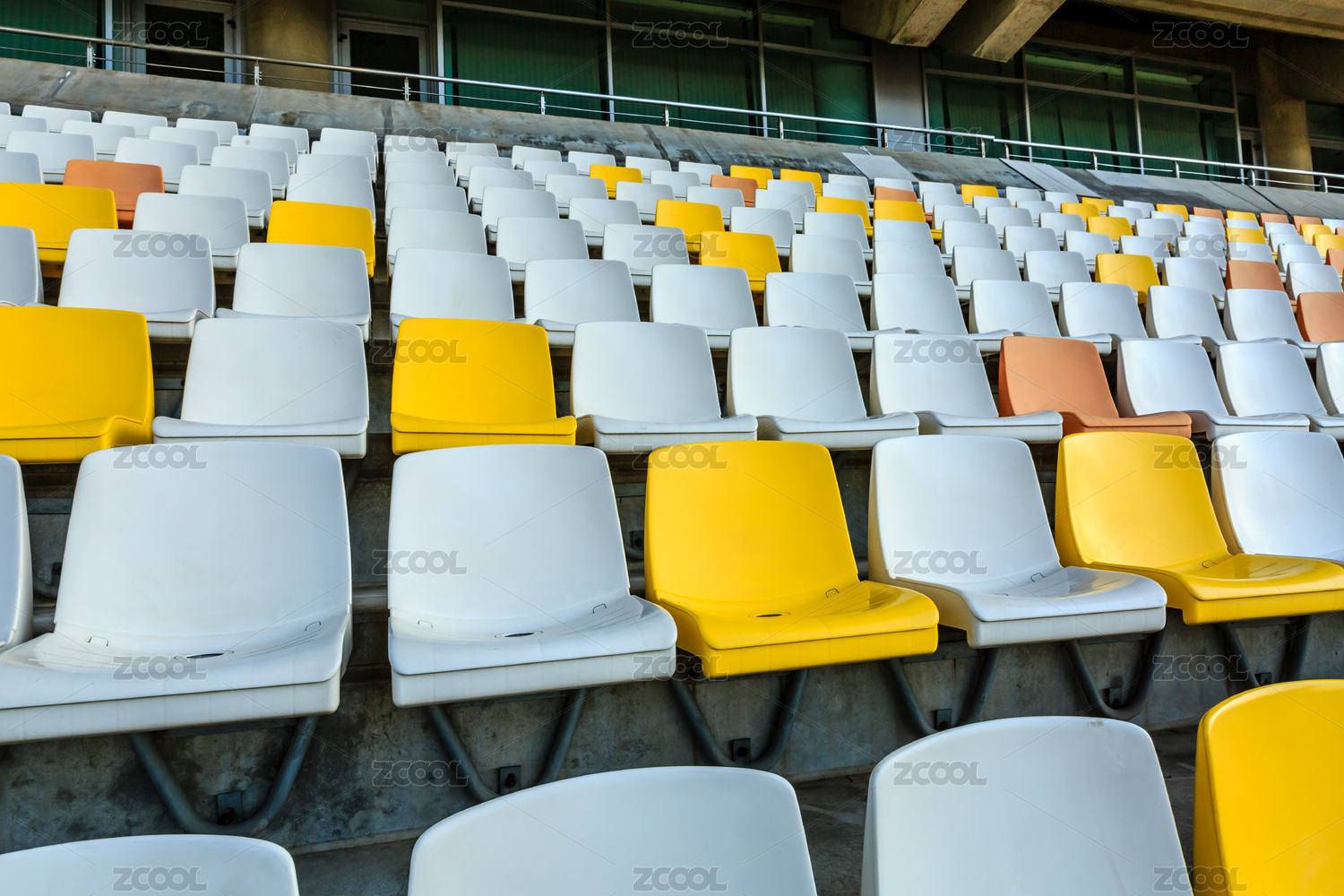 晴朗的白天體育場內(nèi)的空的塑料椅子