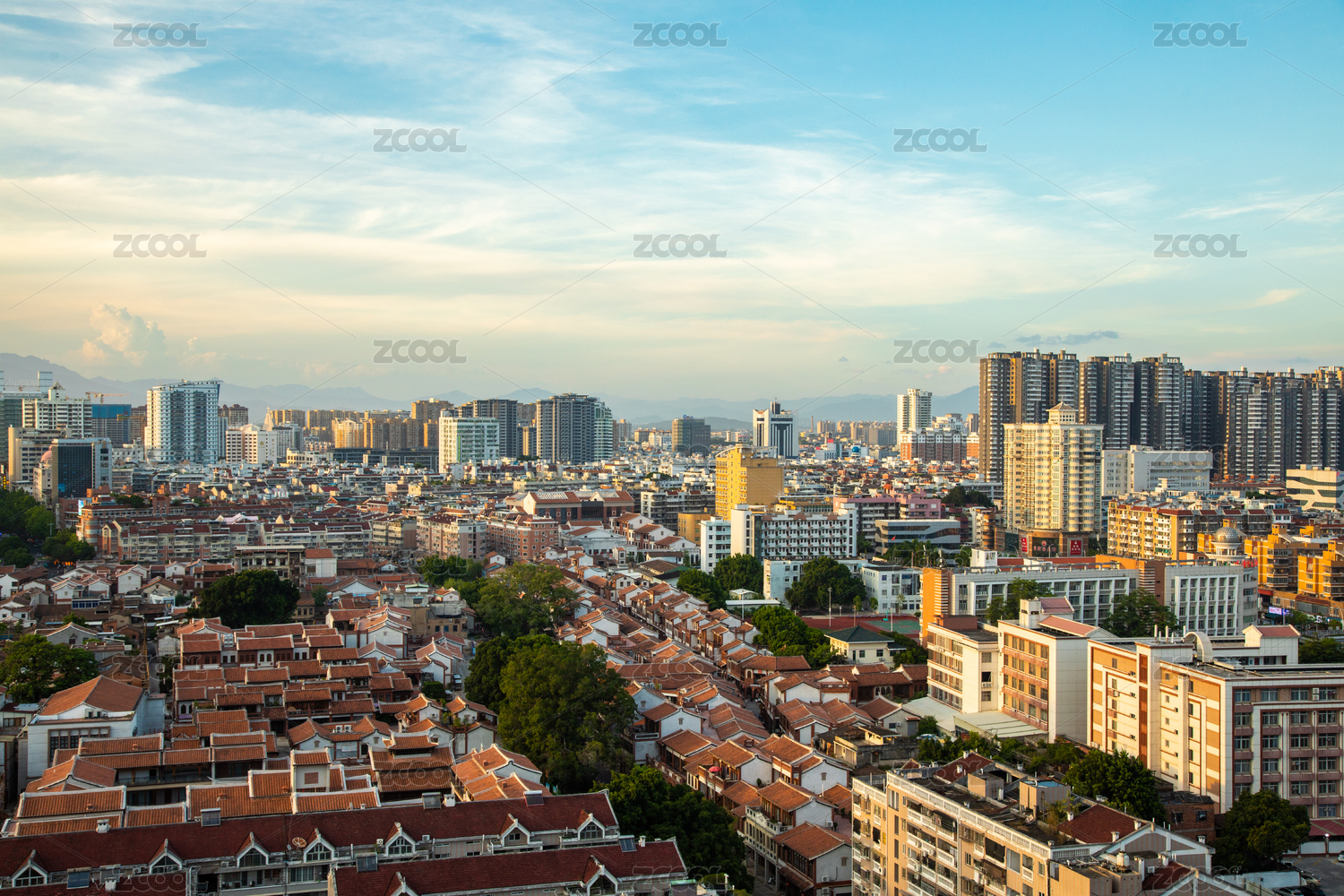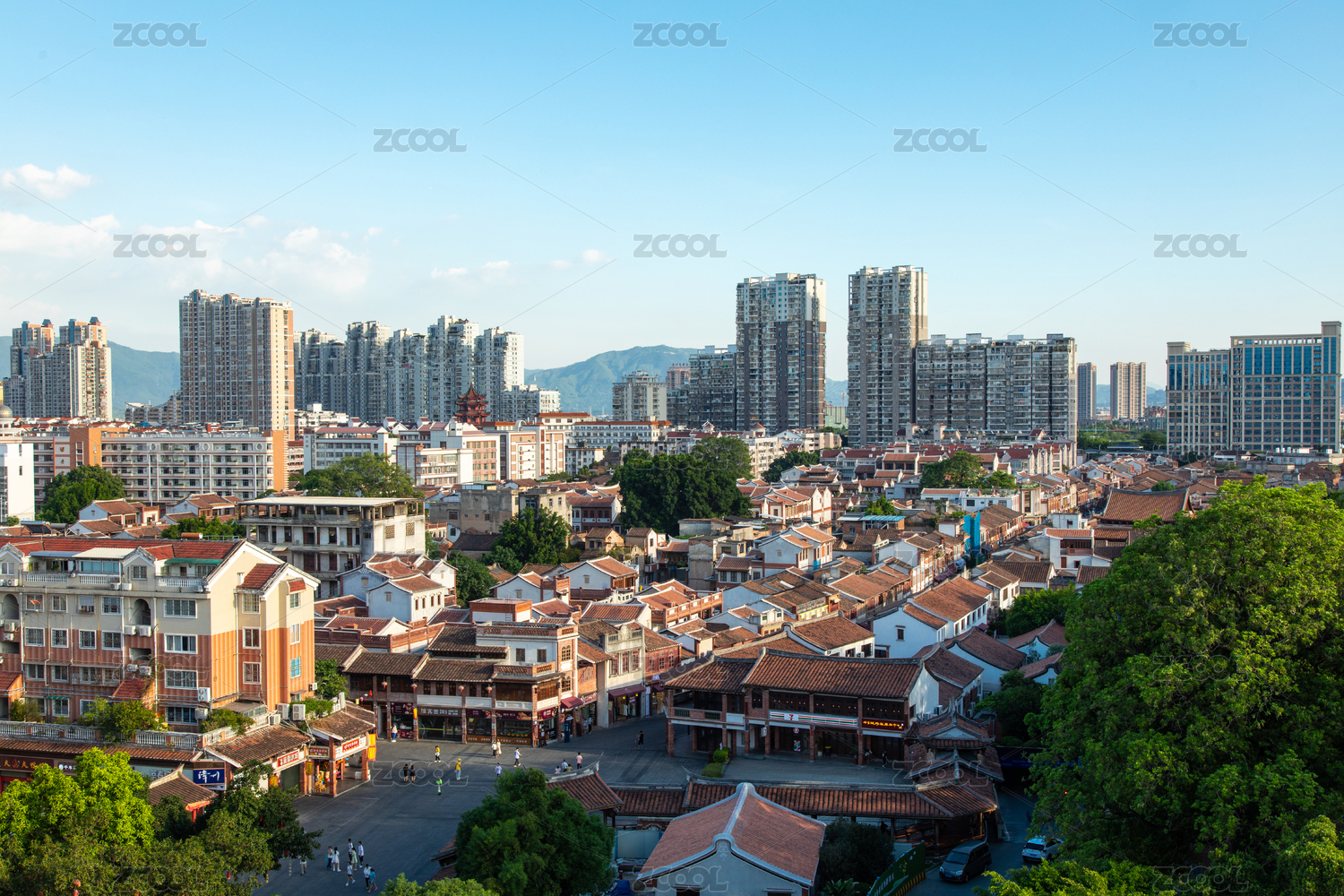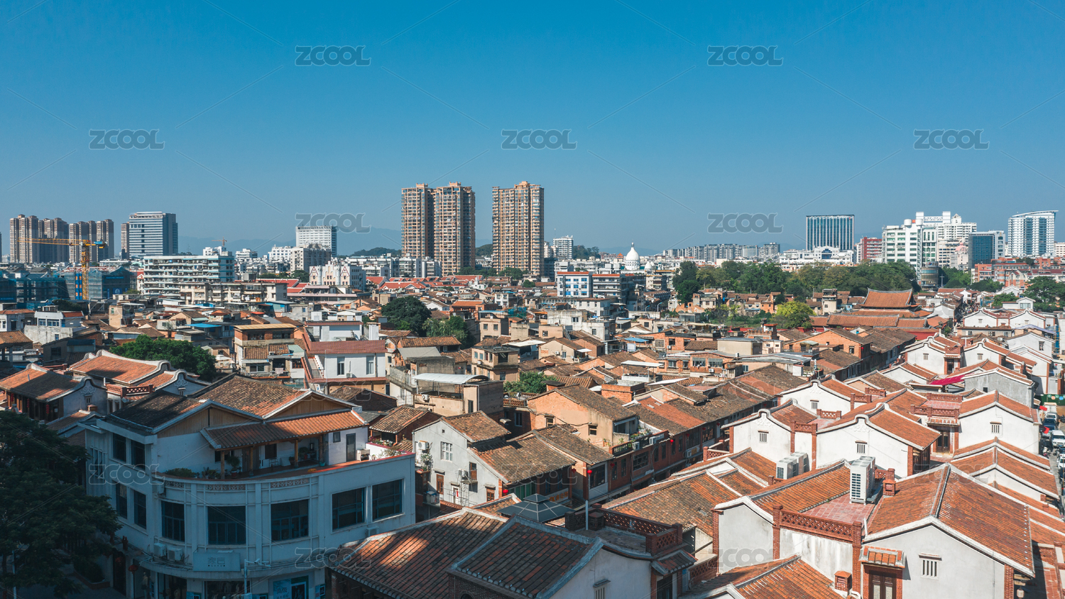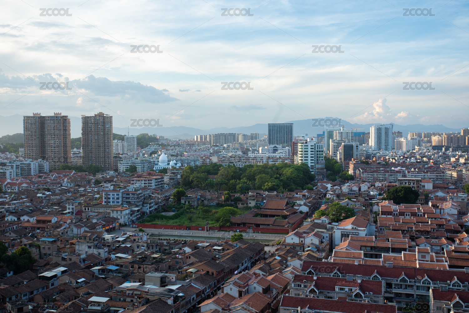 航拍漳州古城與高樓