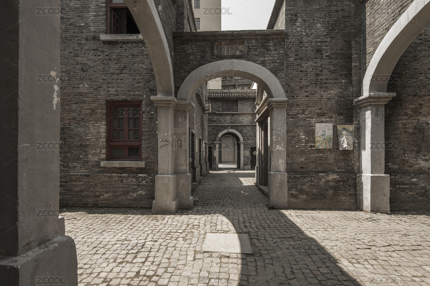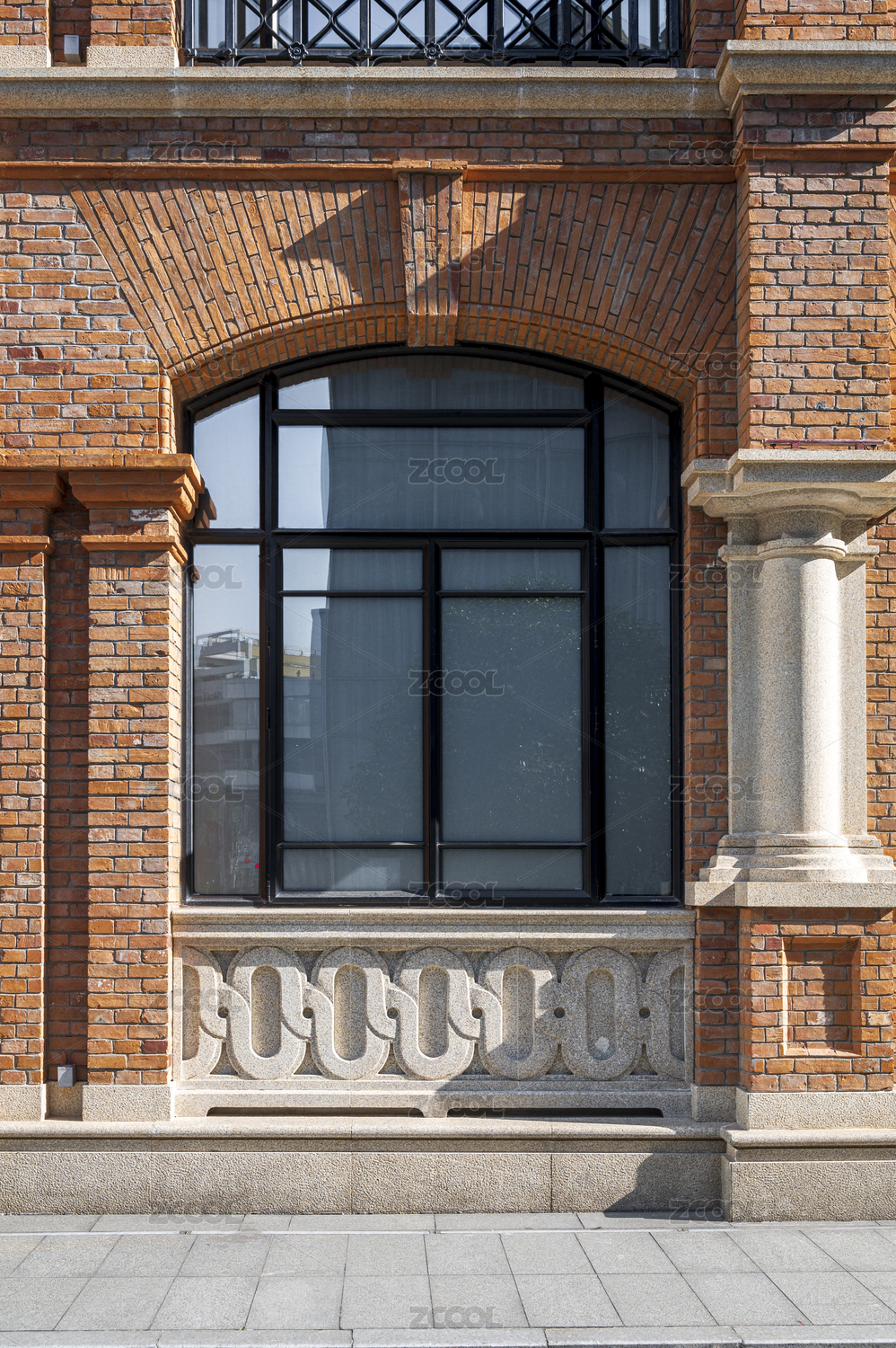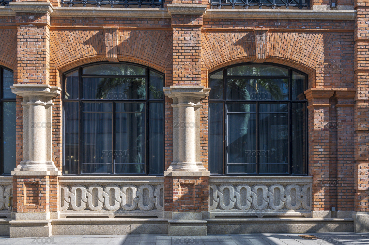 老上海的歐式紅磚老洋房外墻及門窗特寫