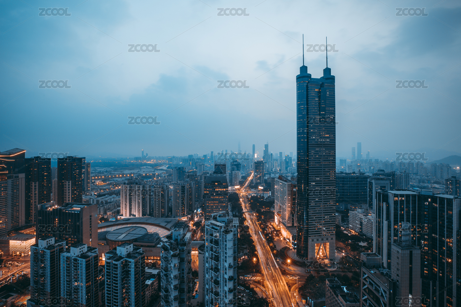 中國深圳長焦拍的羅湖地標(biāo)地王大廈