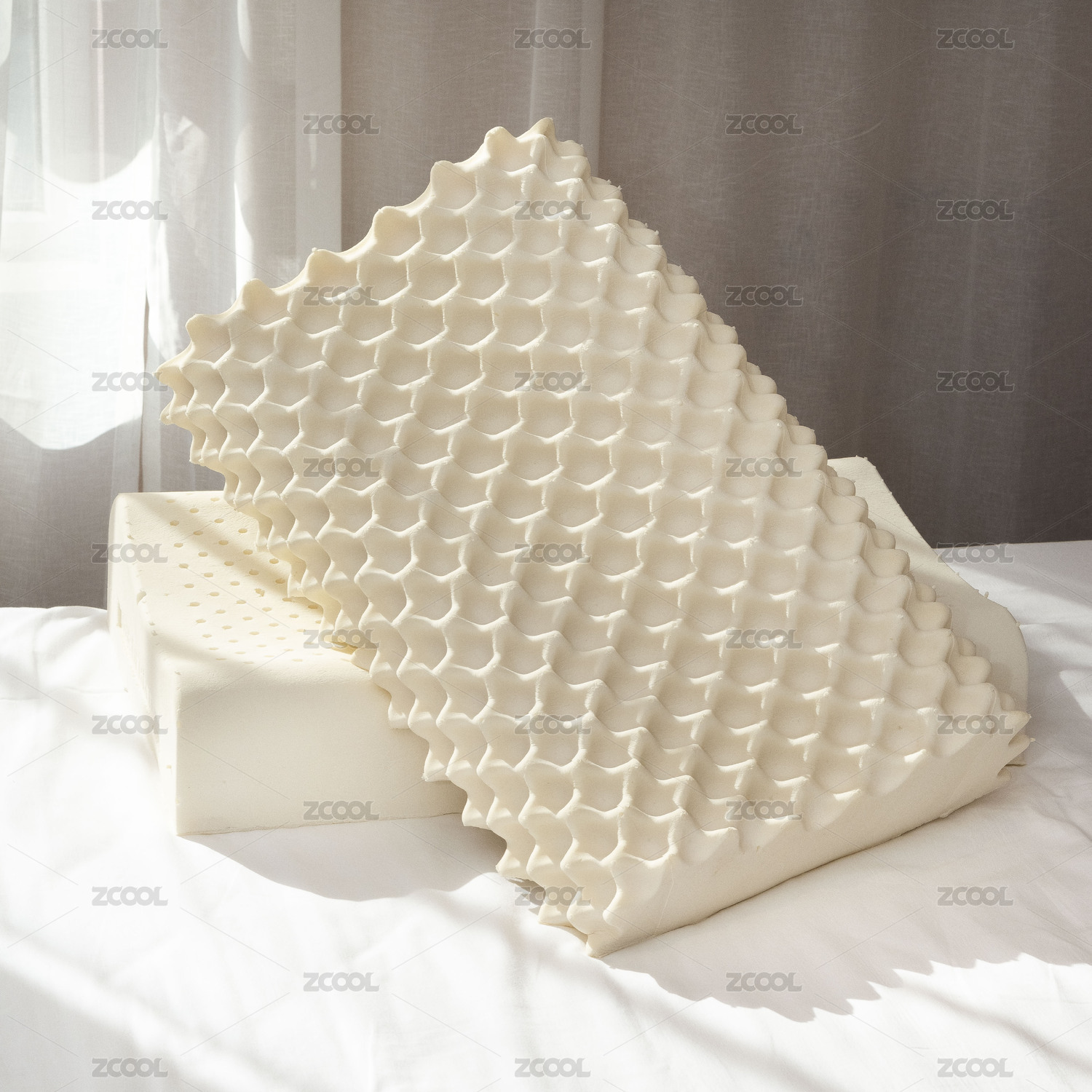 放在白色背景上的乳膠枕細節(jié)圖