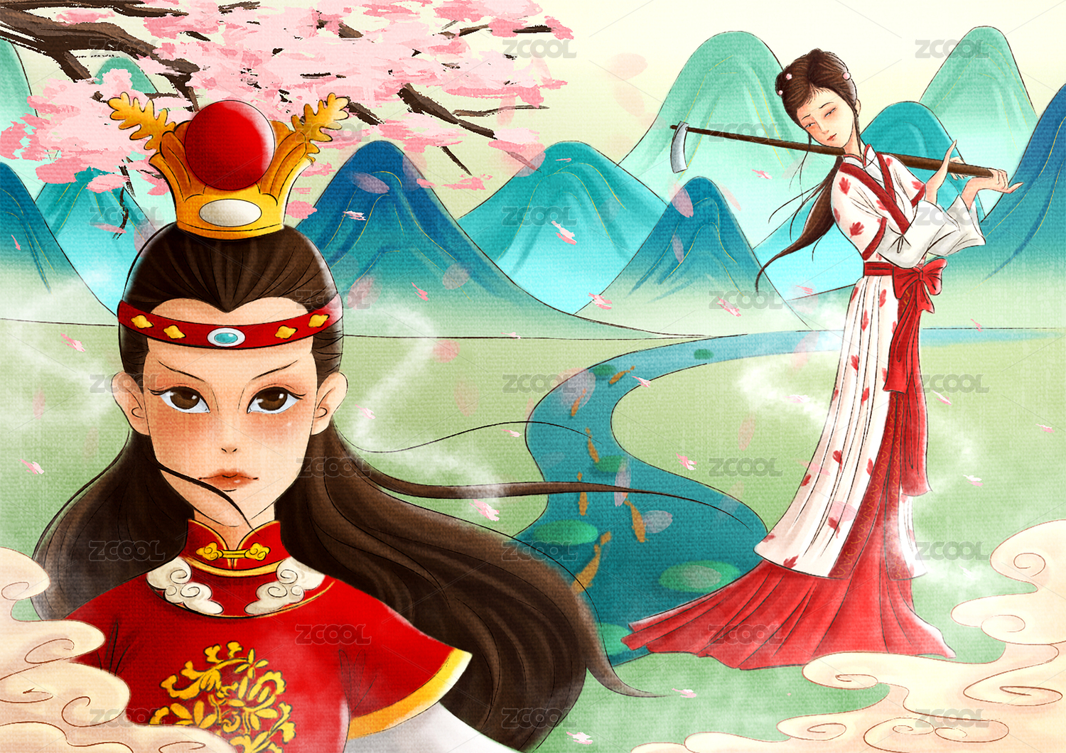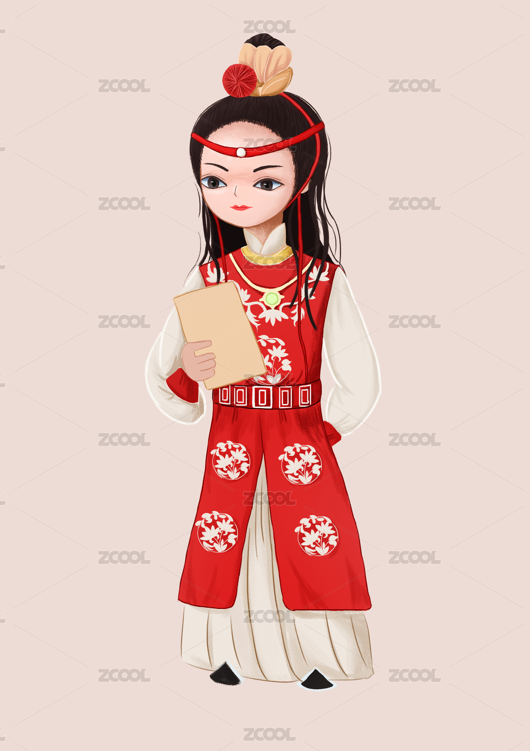 紅樓夢系列晴雯撕扇卡通插畫線稿