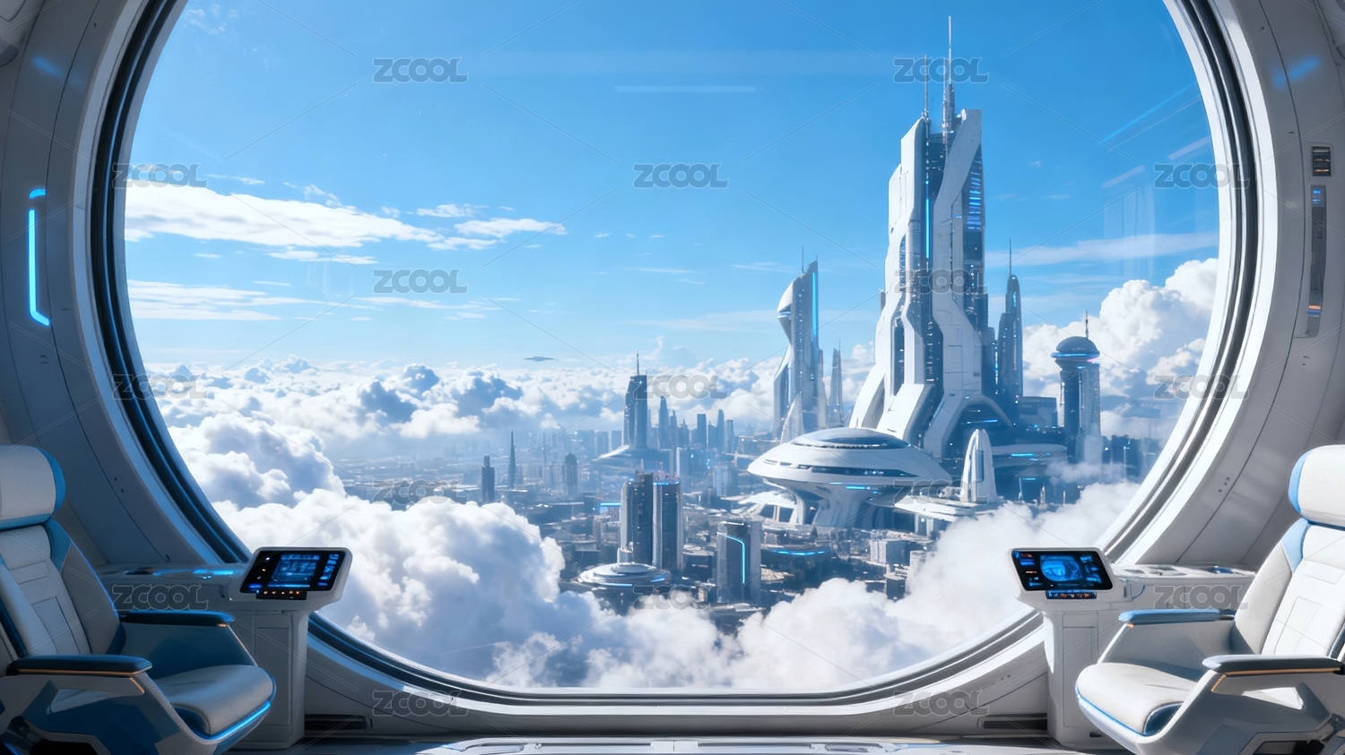 科幻艙室未來感城市場(chǎng)景