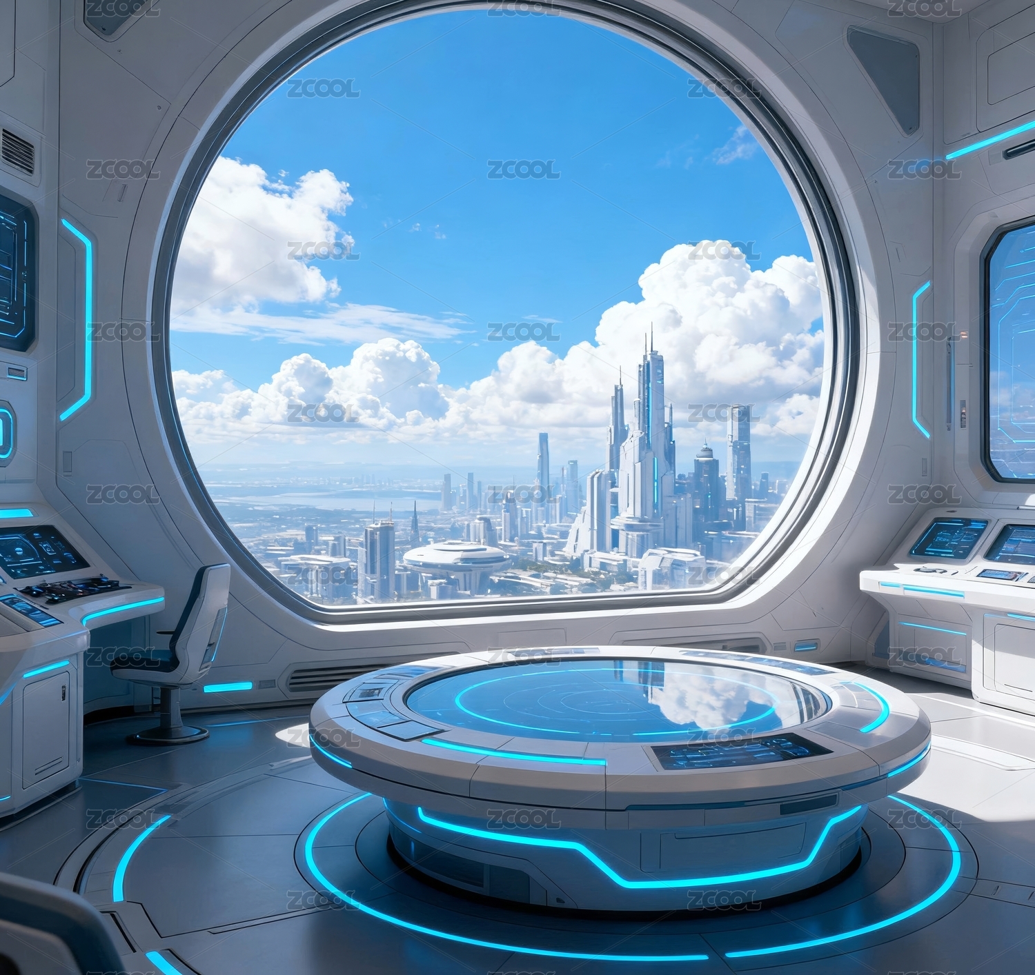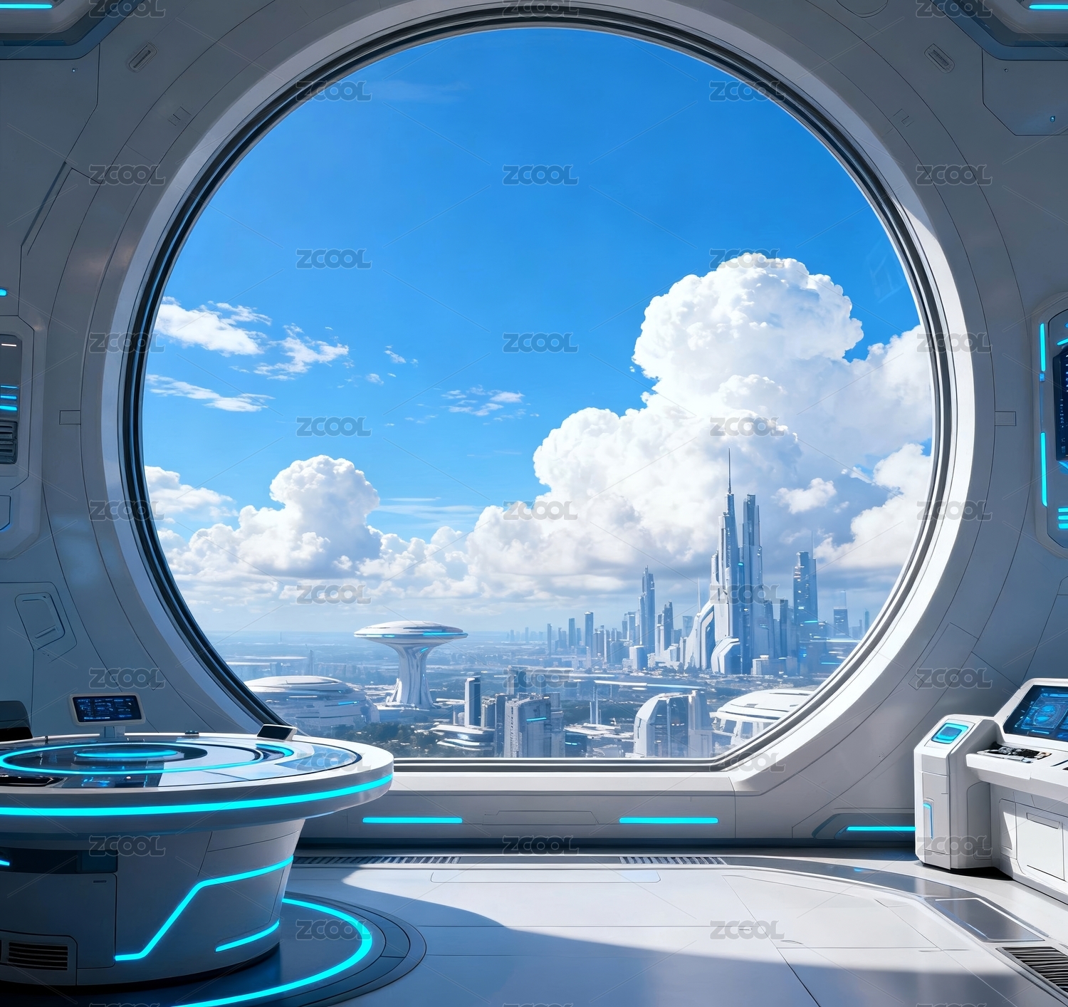 未來艙室科技城市觀景場(chǎng)景