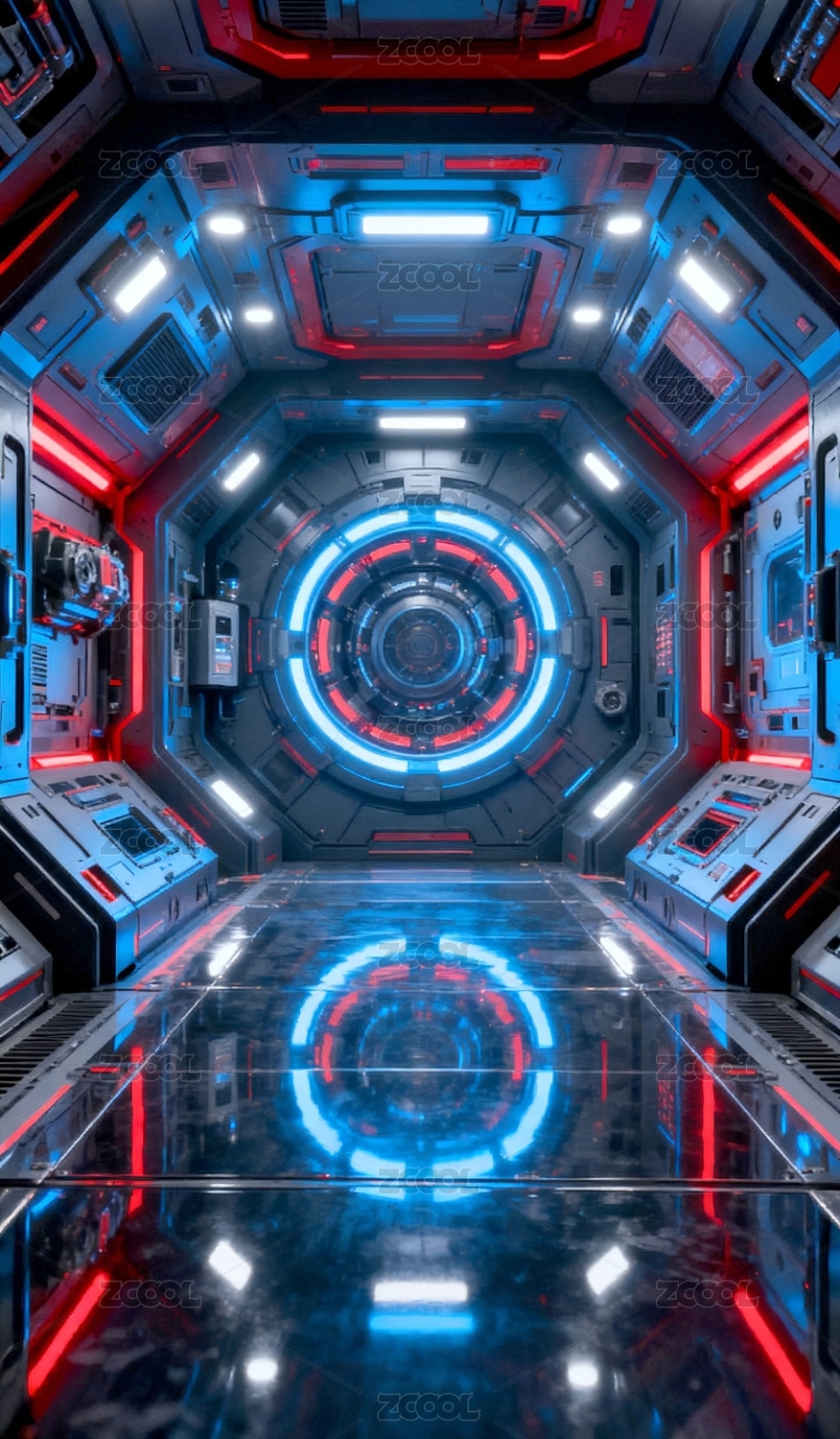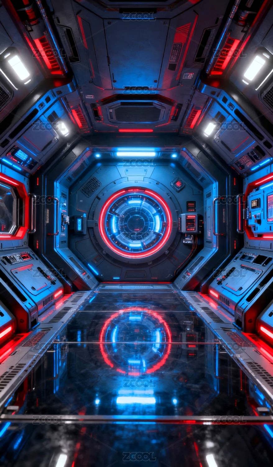 未來科技艙室的圓形通道