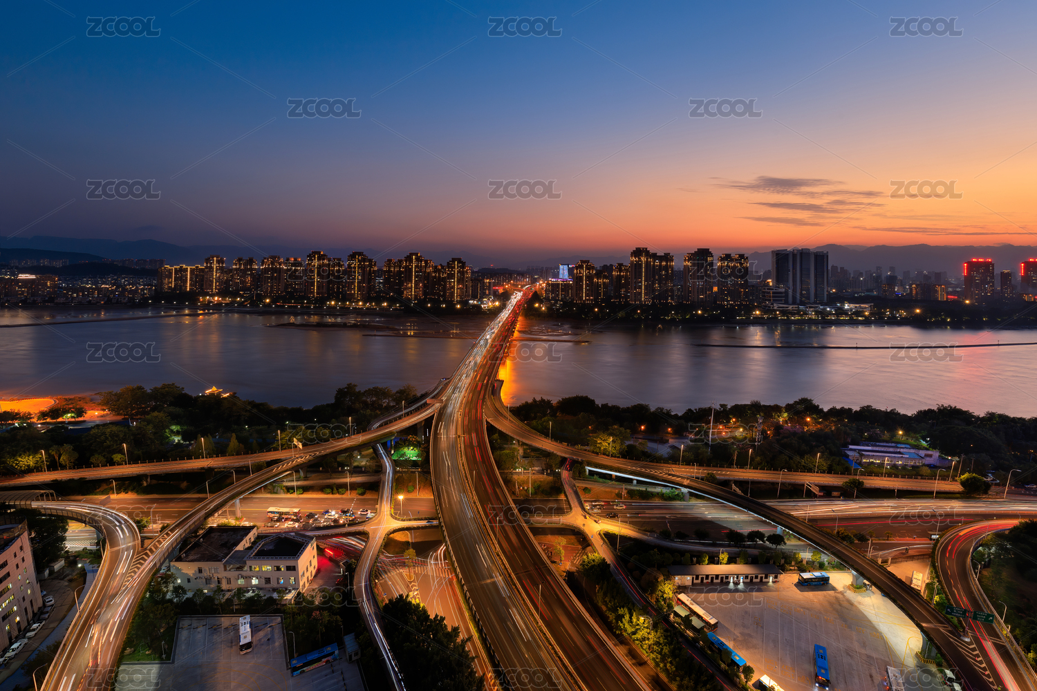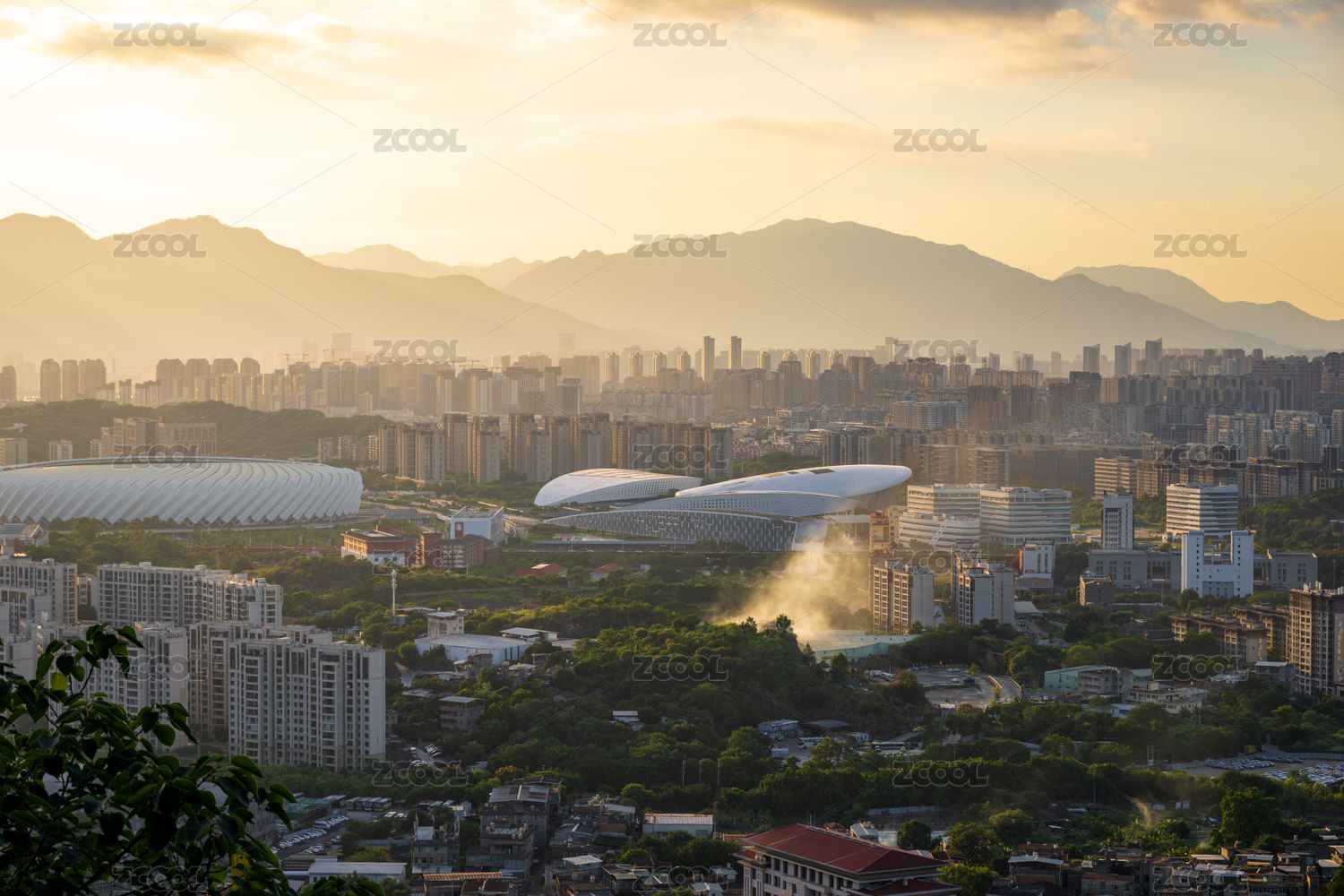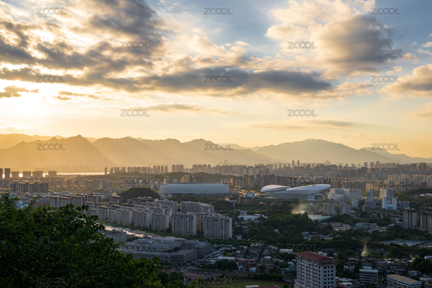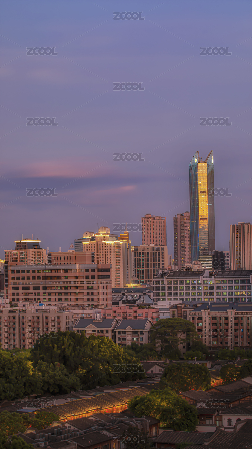 福建省福州市城市日落景觀與現(xiàn)代化建筑群