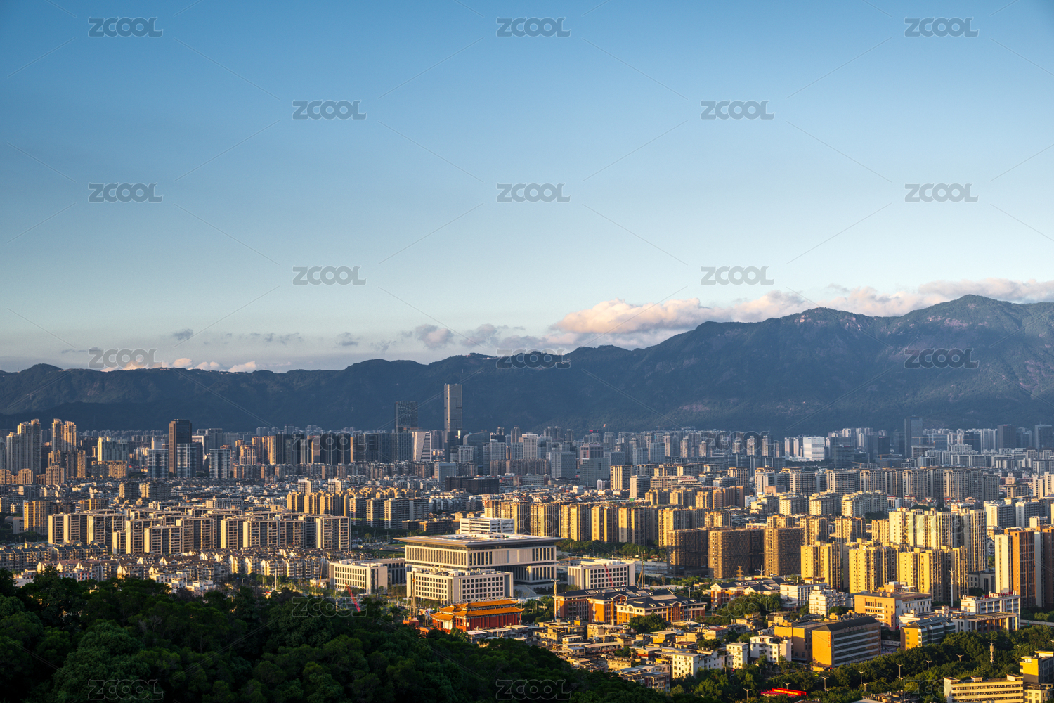 福建省福州市城市全景與遠山美景