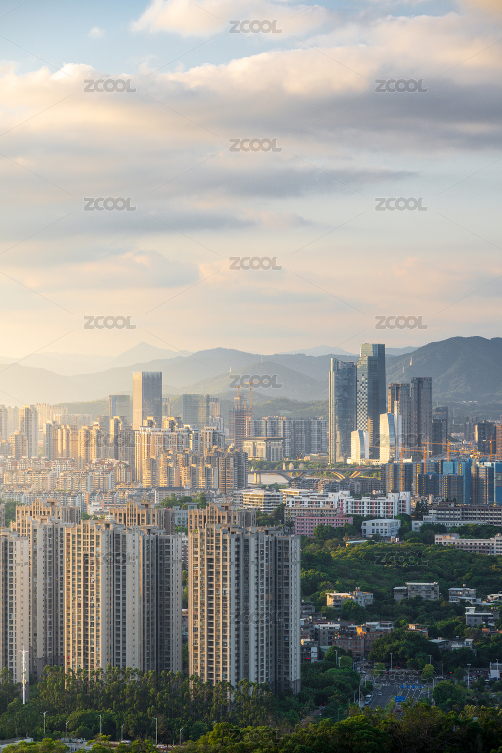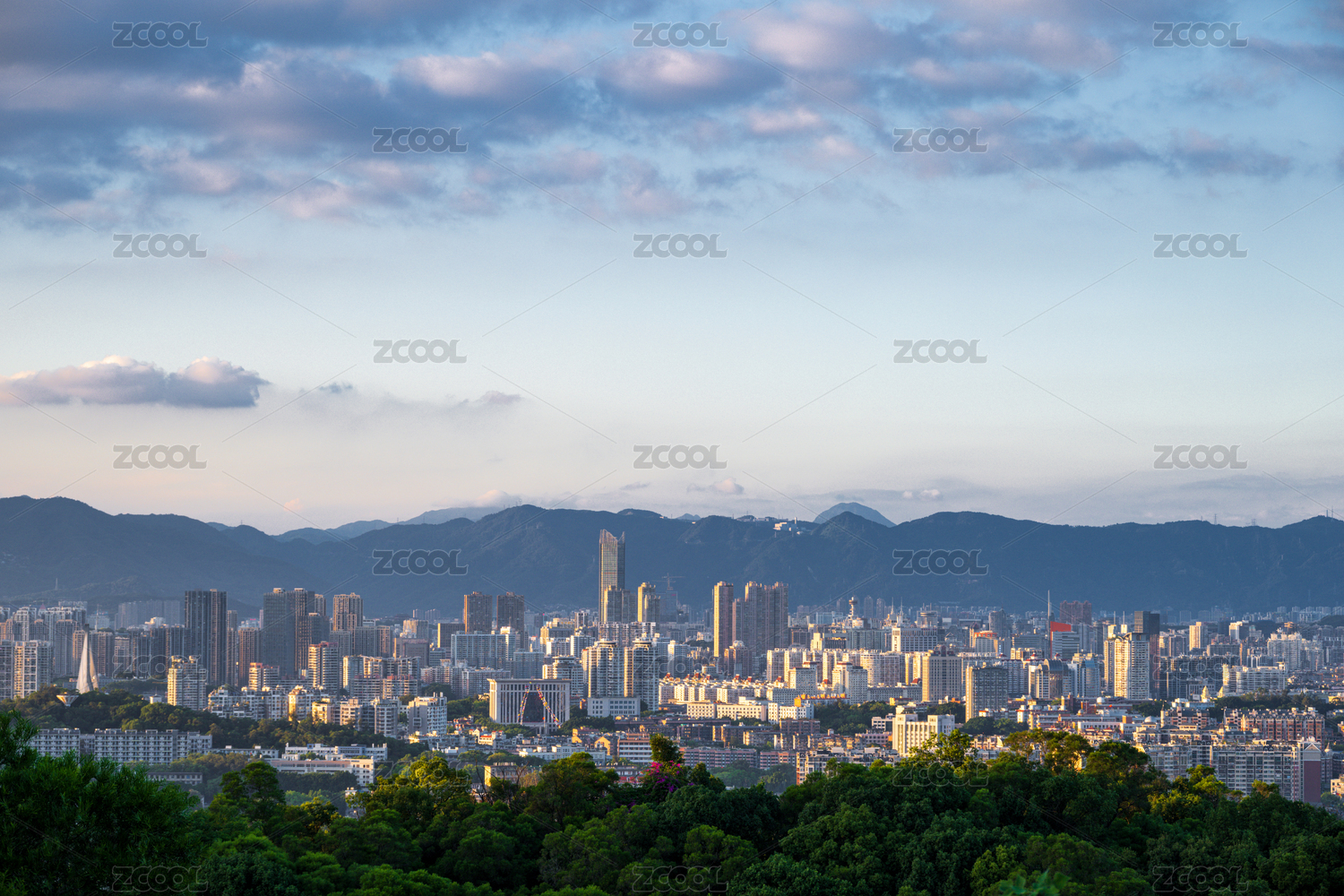 福建省福州市城市天際線與山脈背景