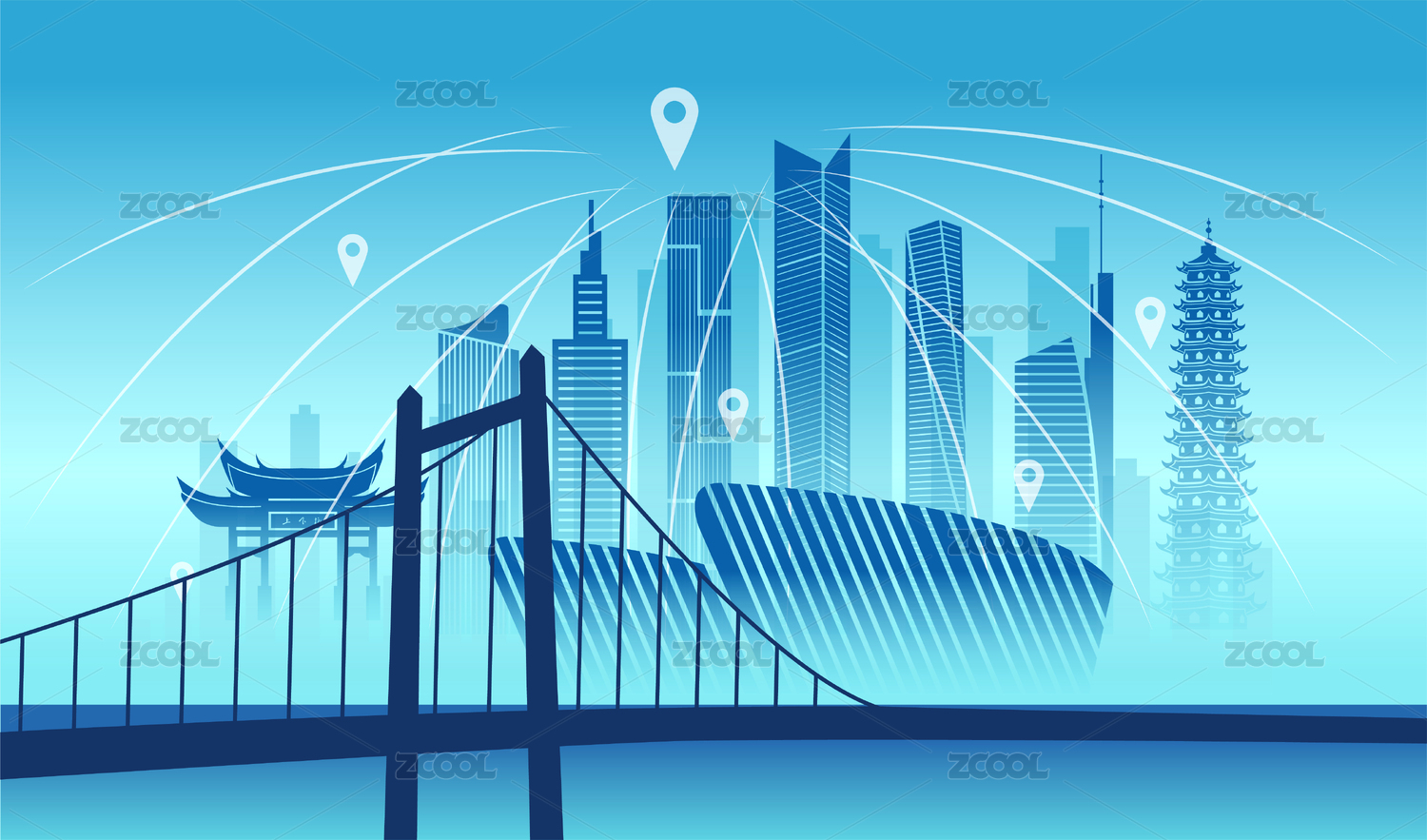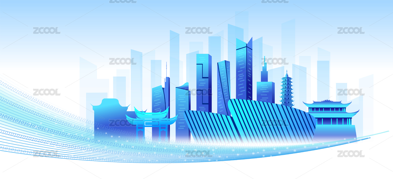 中國福建省福州市城市數(shù)據(jù)網(wǎng)絡(luò)空間插畫