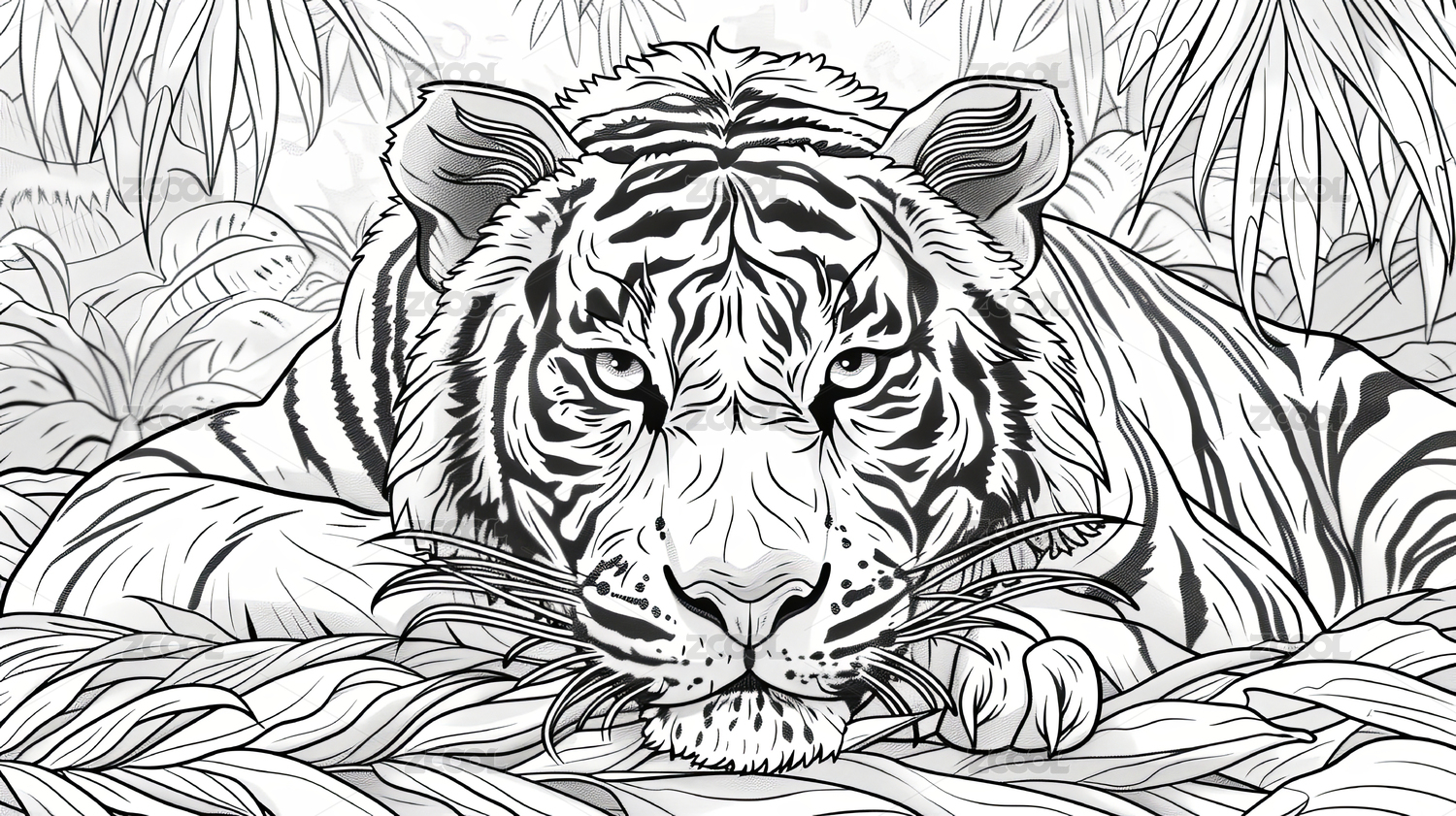 老虎線稿涂色本黑白