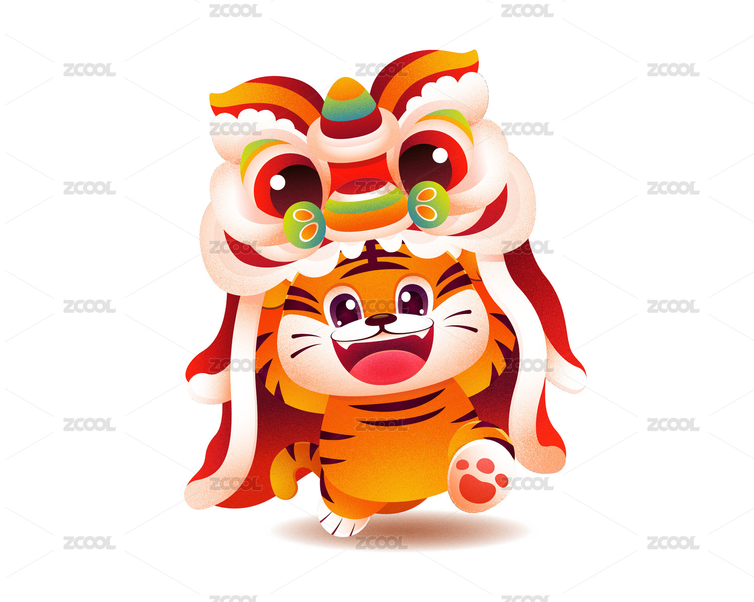 卡通老虎新春舞獅矢量插畫