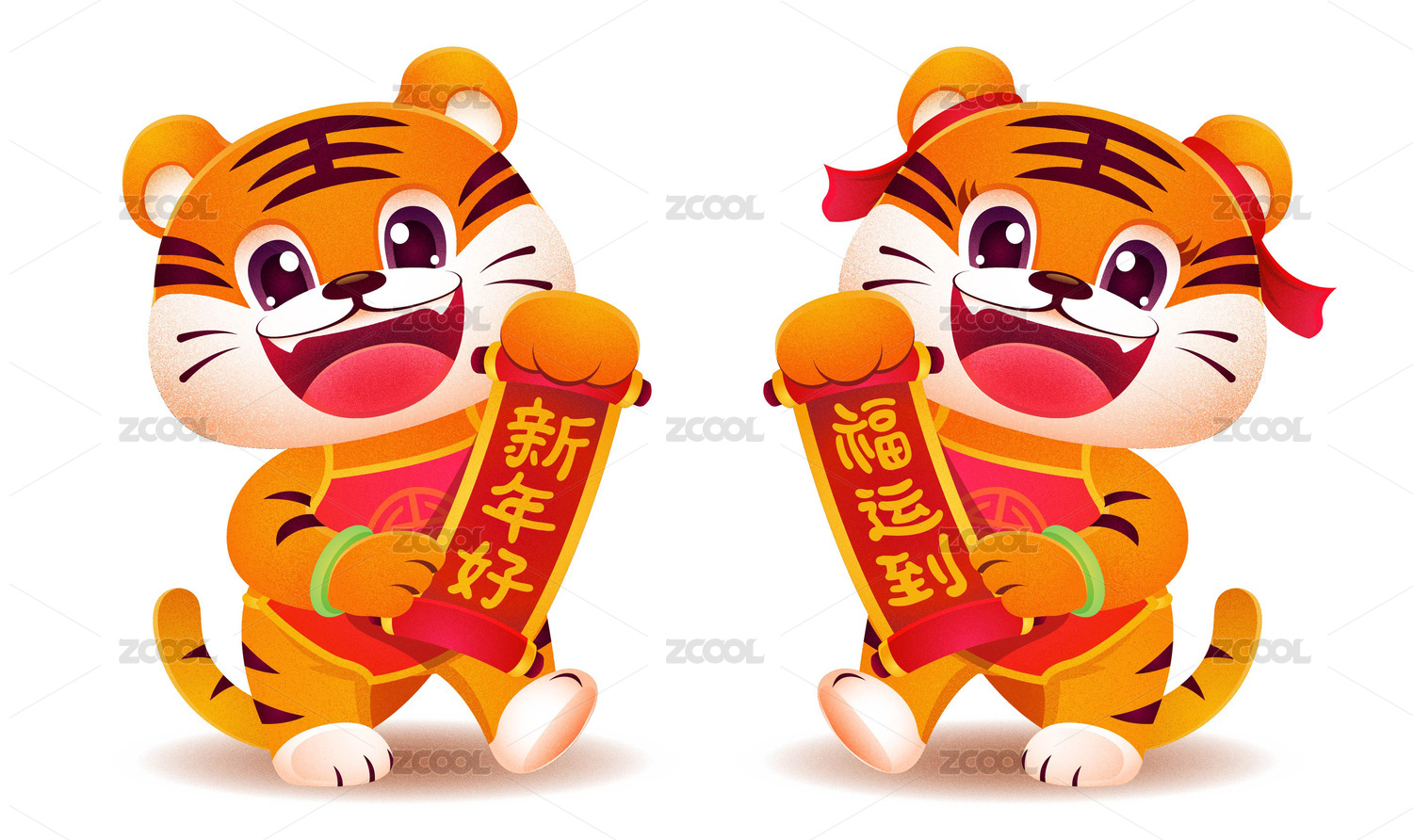 春節(jié)卡通老虎春聯(lián)喜慶插畫