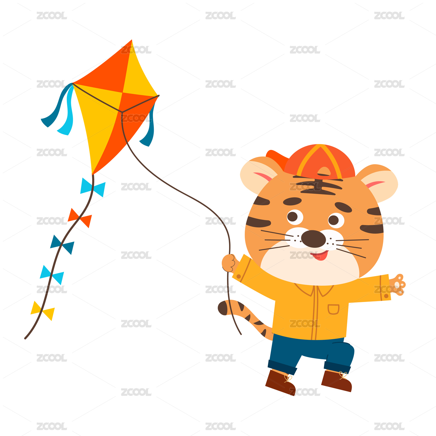 放風(fēng)箏的可愛老虎矢量插畫