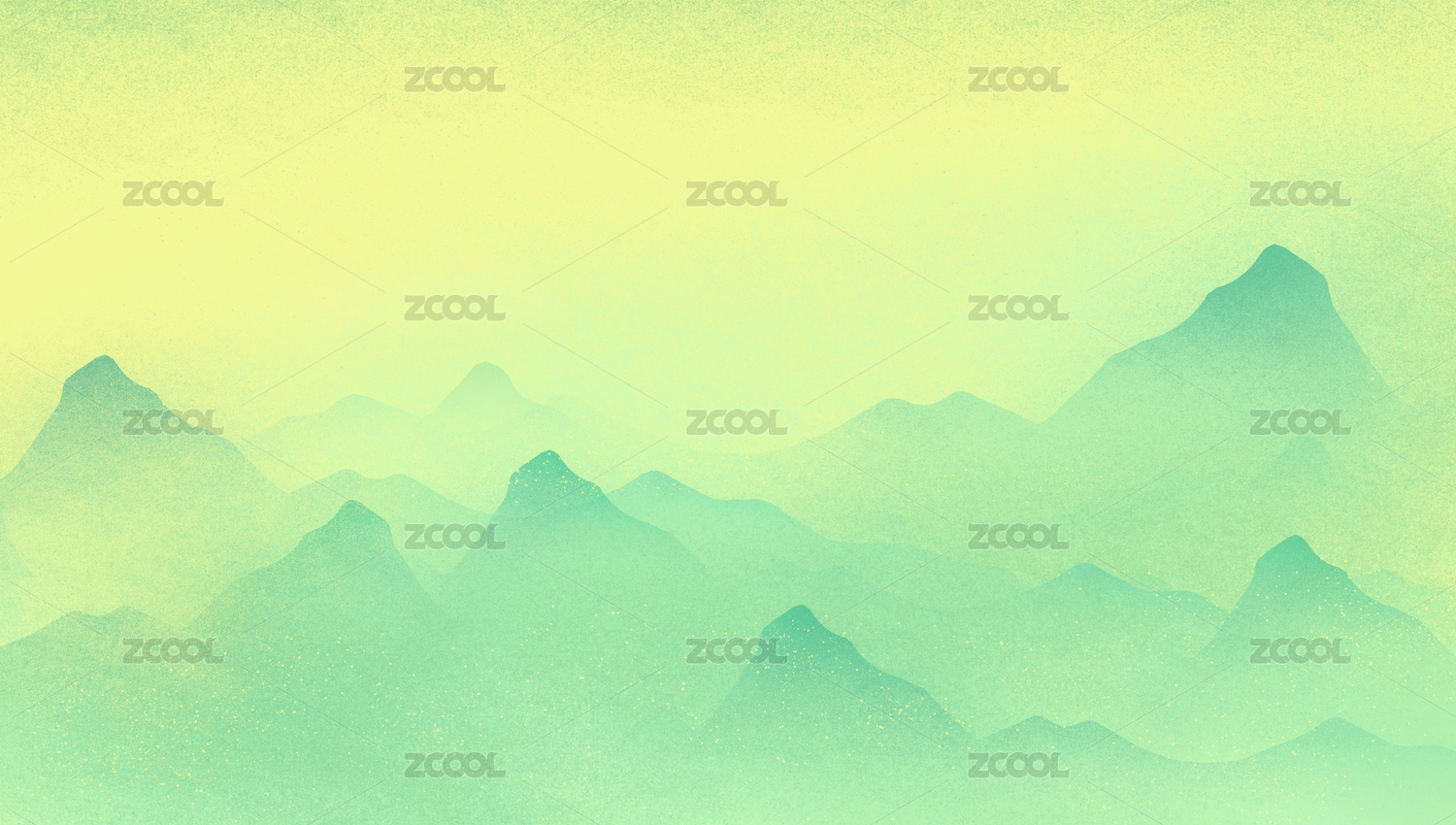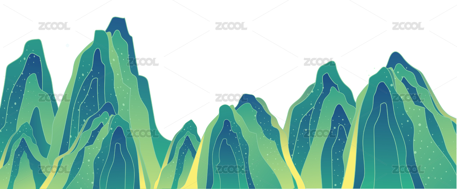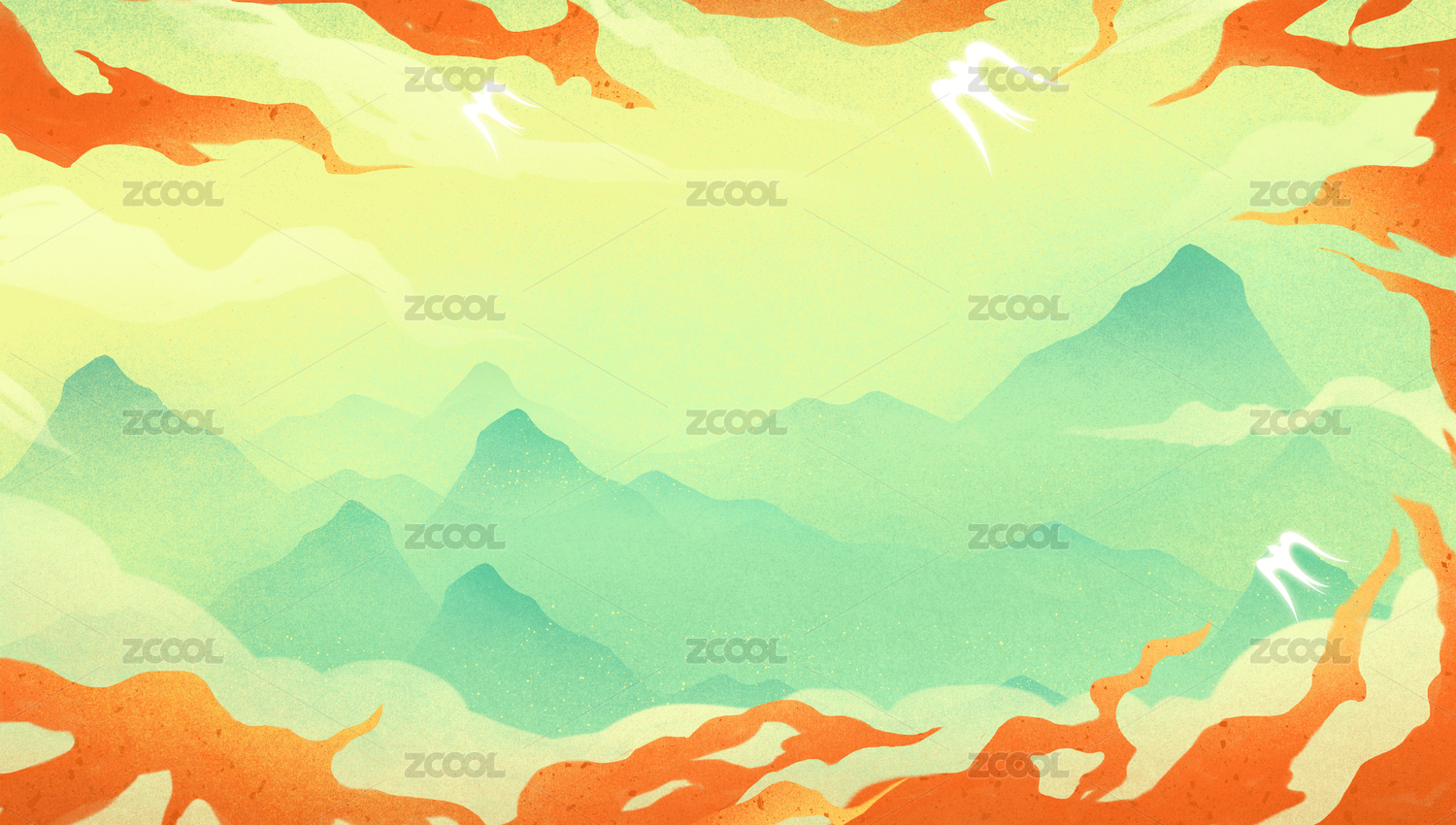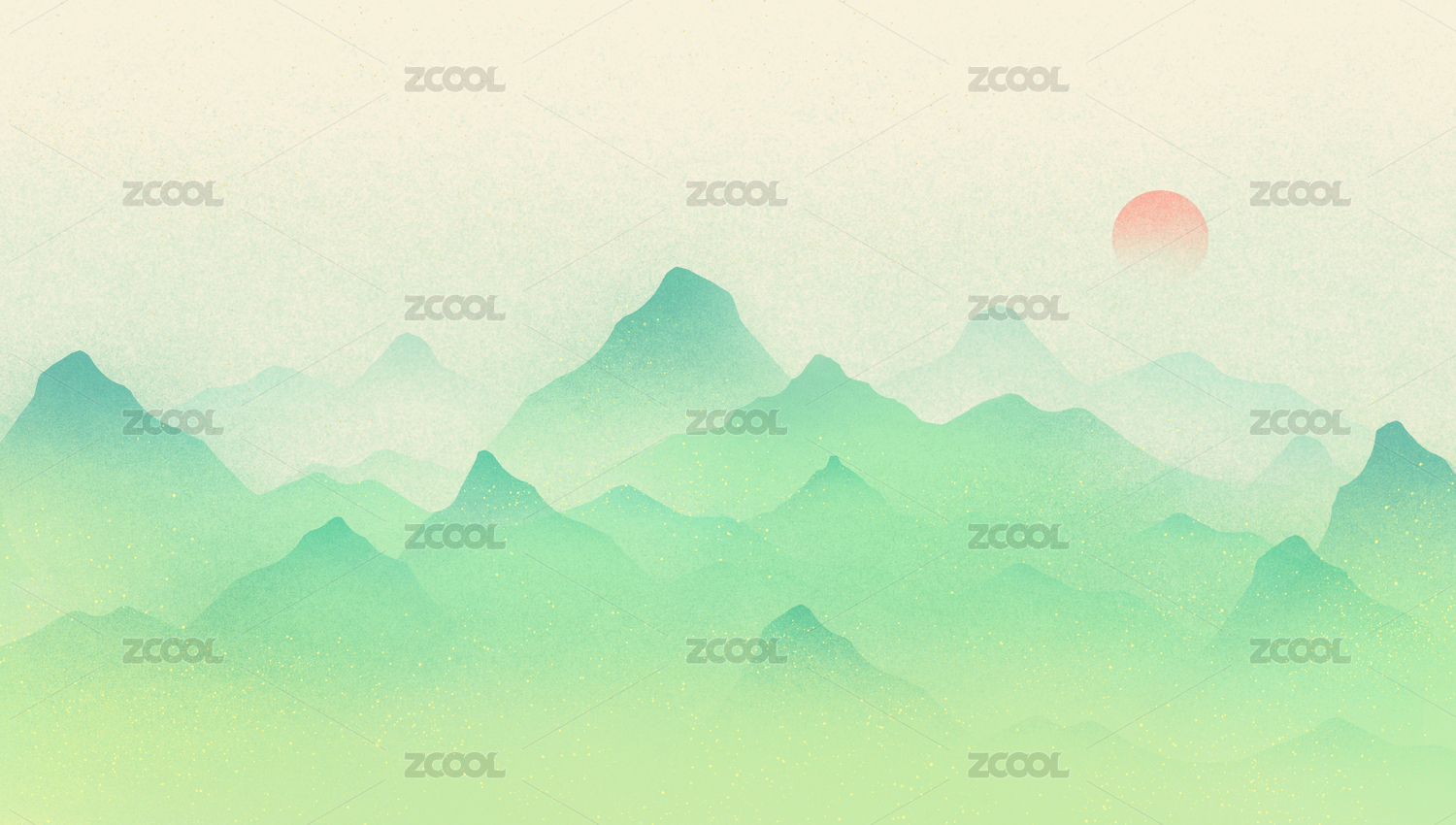 中國風敦煌壁畫綠色山峰千里江山落日