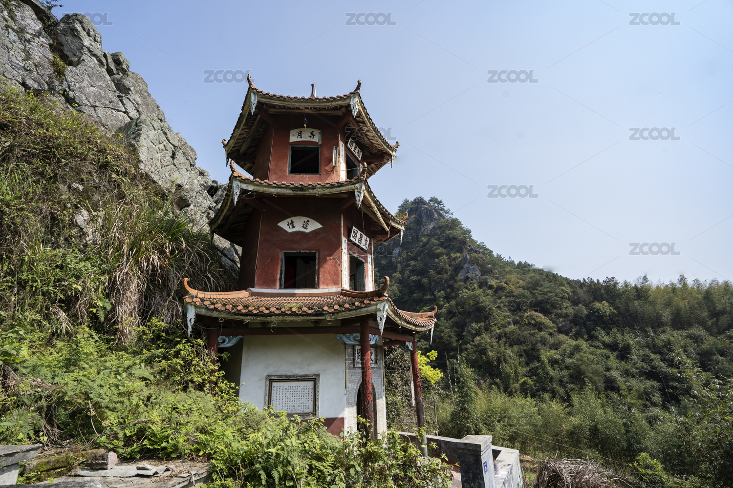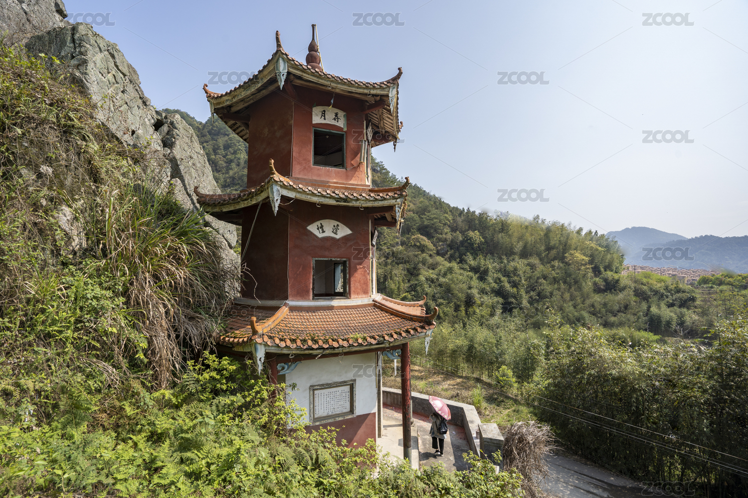 石壁下的一座塔式文昌閣,中國福建龍巖江山