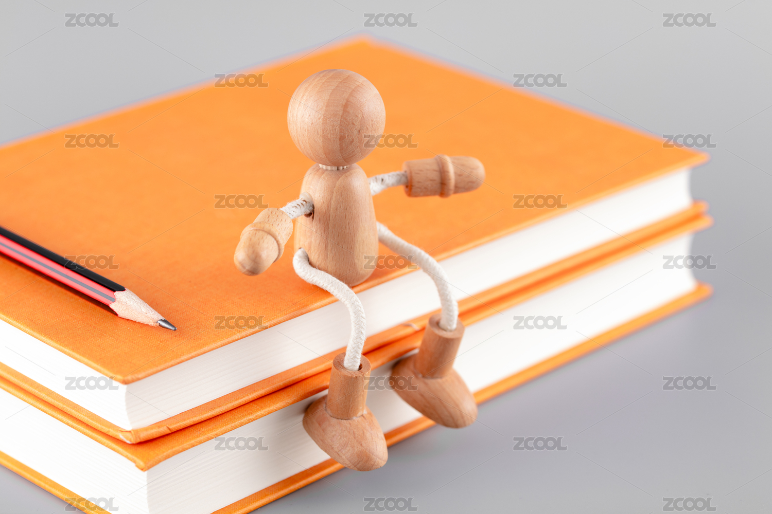 白色環(huán)境中在石板階梯上前進(jìn)的木頭人偶