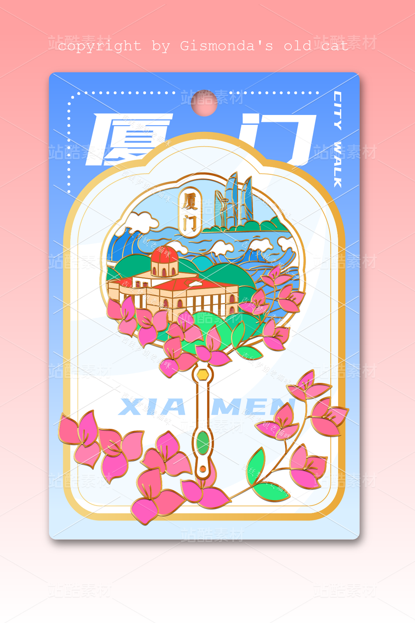 廈門鼓浪嶼世茂大廈八卦樓福建旅游紀念品冰箱貼隨身鏡