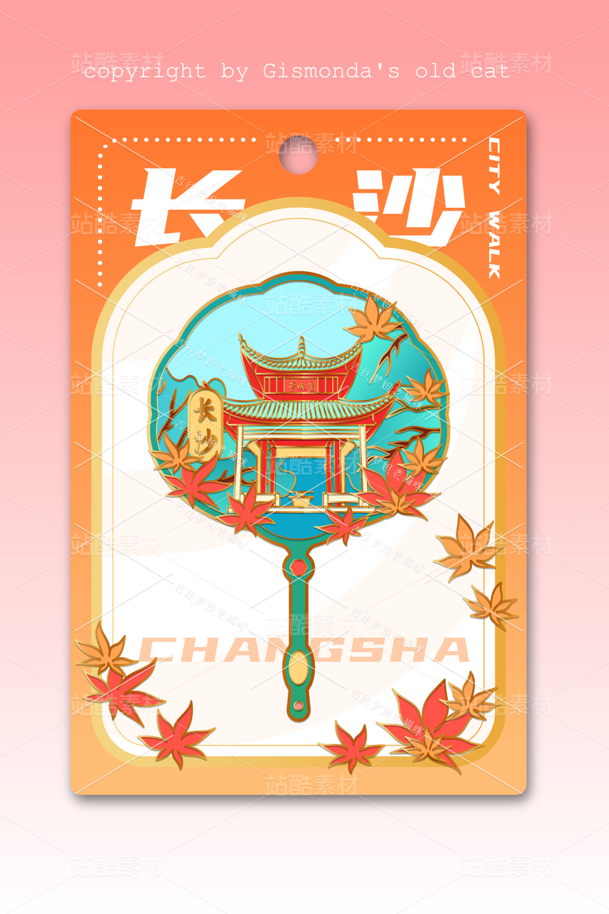 長沙愛晚亭秋天楓葉旅游紀念品冰箱貼隨身鏡