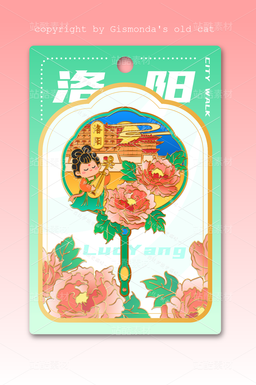 洛陽應天門古都牡丹唐代女孩旅游紀念品冰箱貼隨身鏡