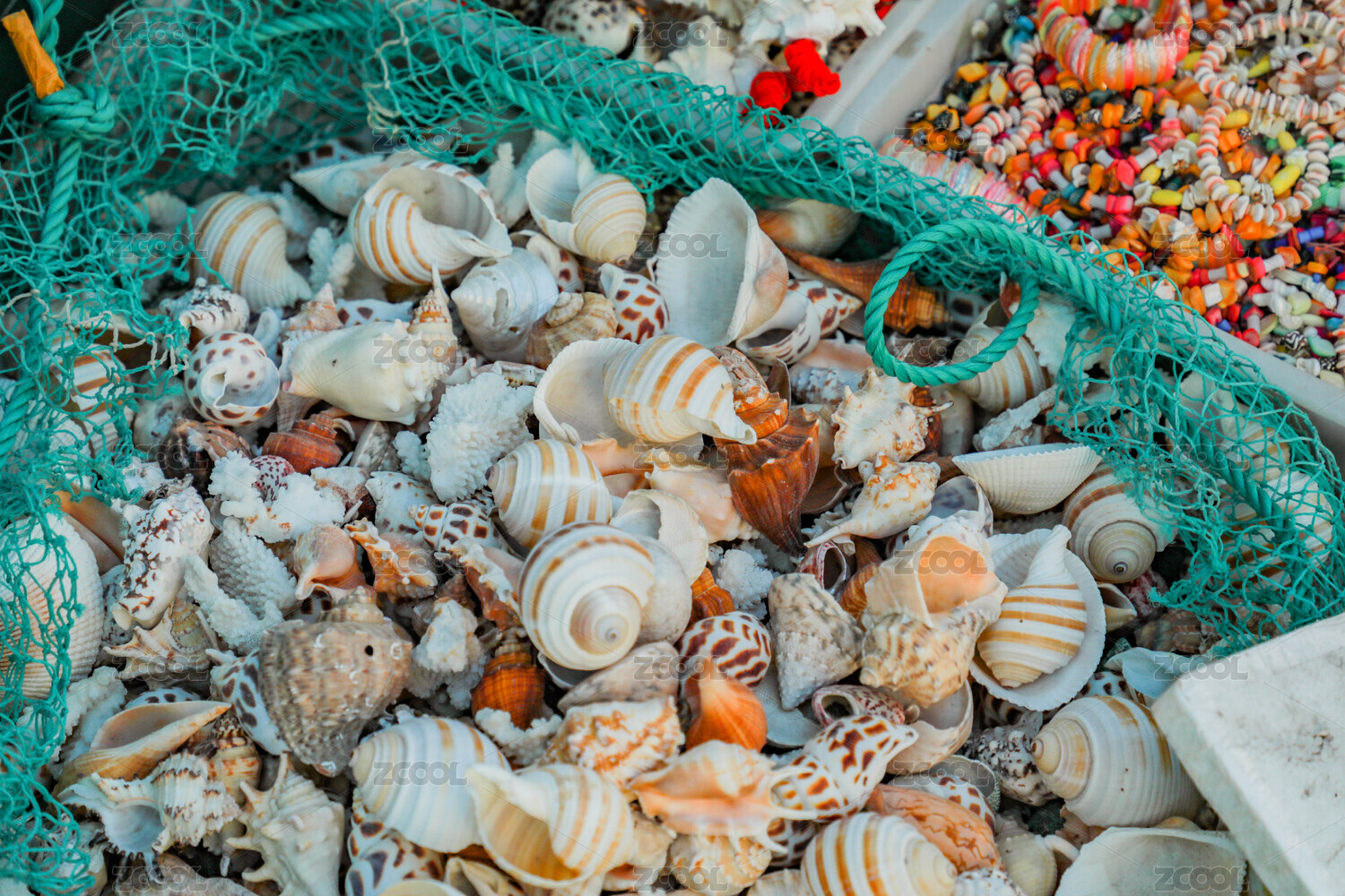 海濱城市旅游紀念品街邊擺攤貝殼海螺工藝品
