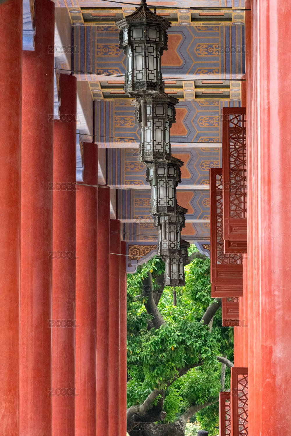 百年歷史的廣州旅游景點中山紀念堂廊柱宮燈