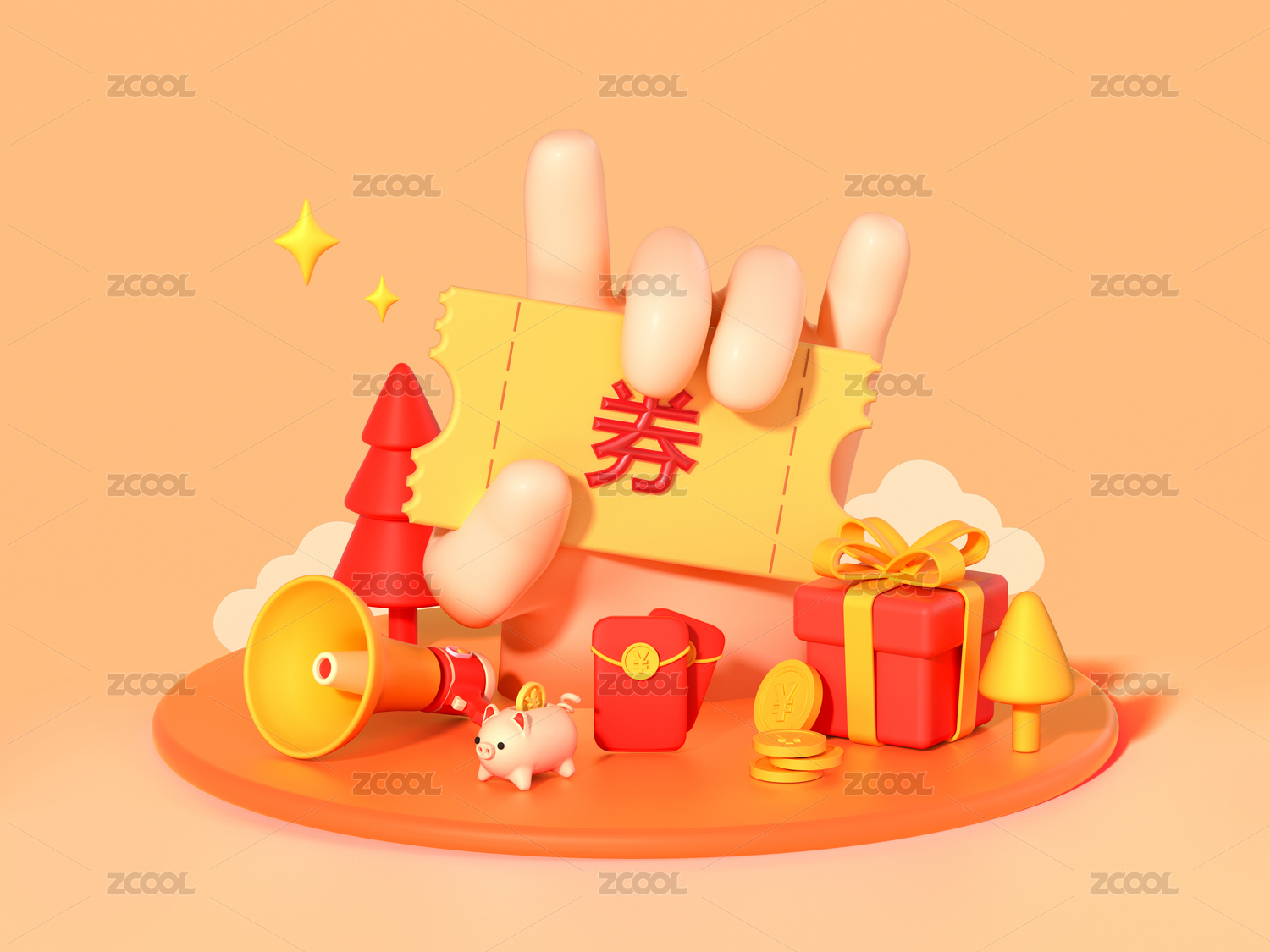 電商活動促銷手握優(yōu)惠券大手禮盒紅包元素堆