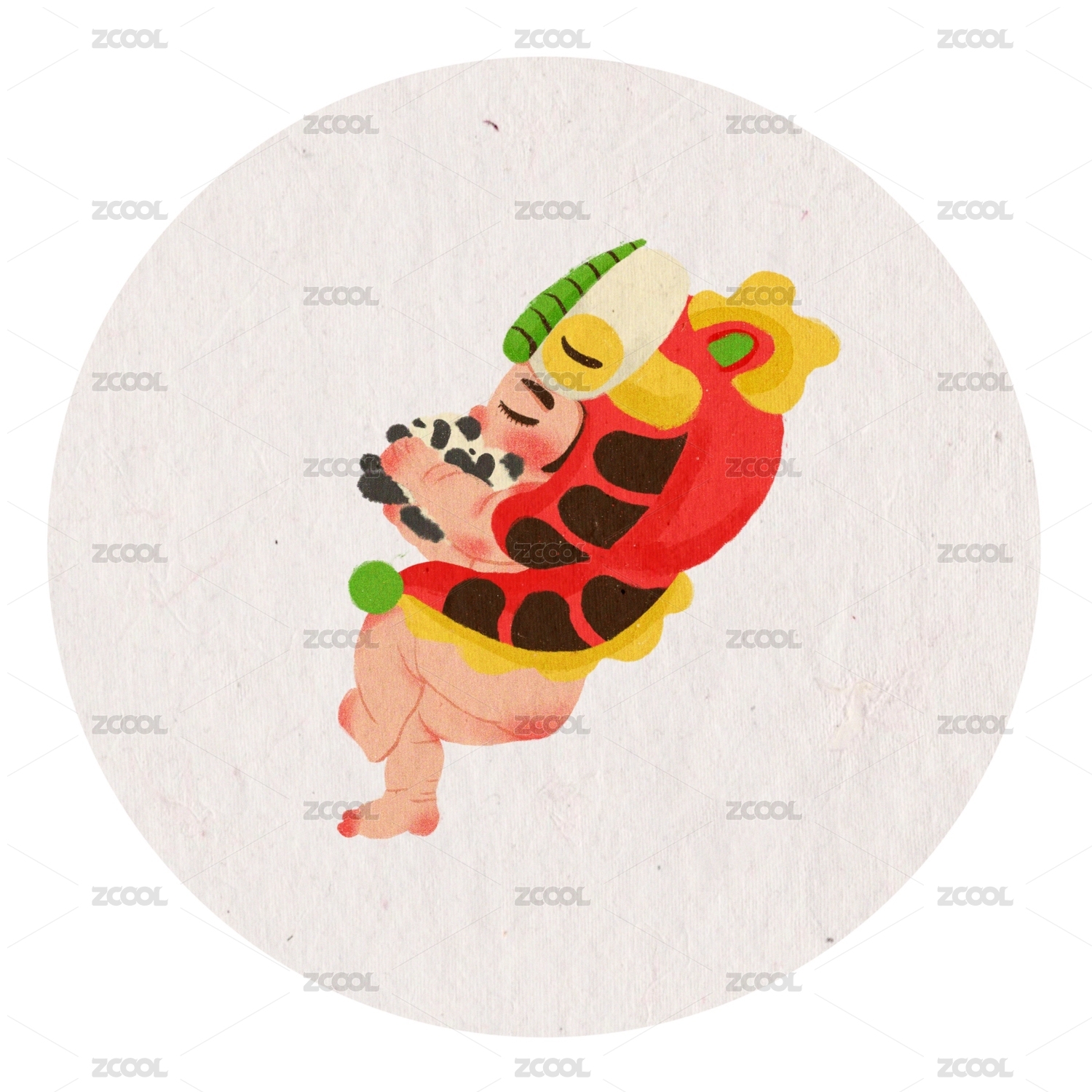 十二生肖簡約國潮虎頭潮流印花紋樣矢量插畫