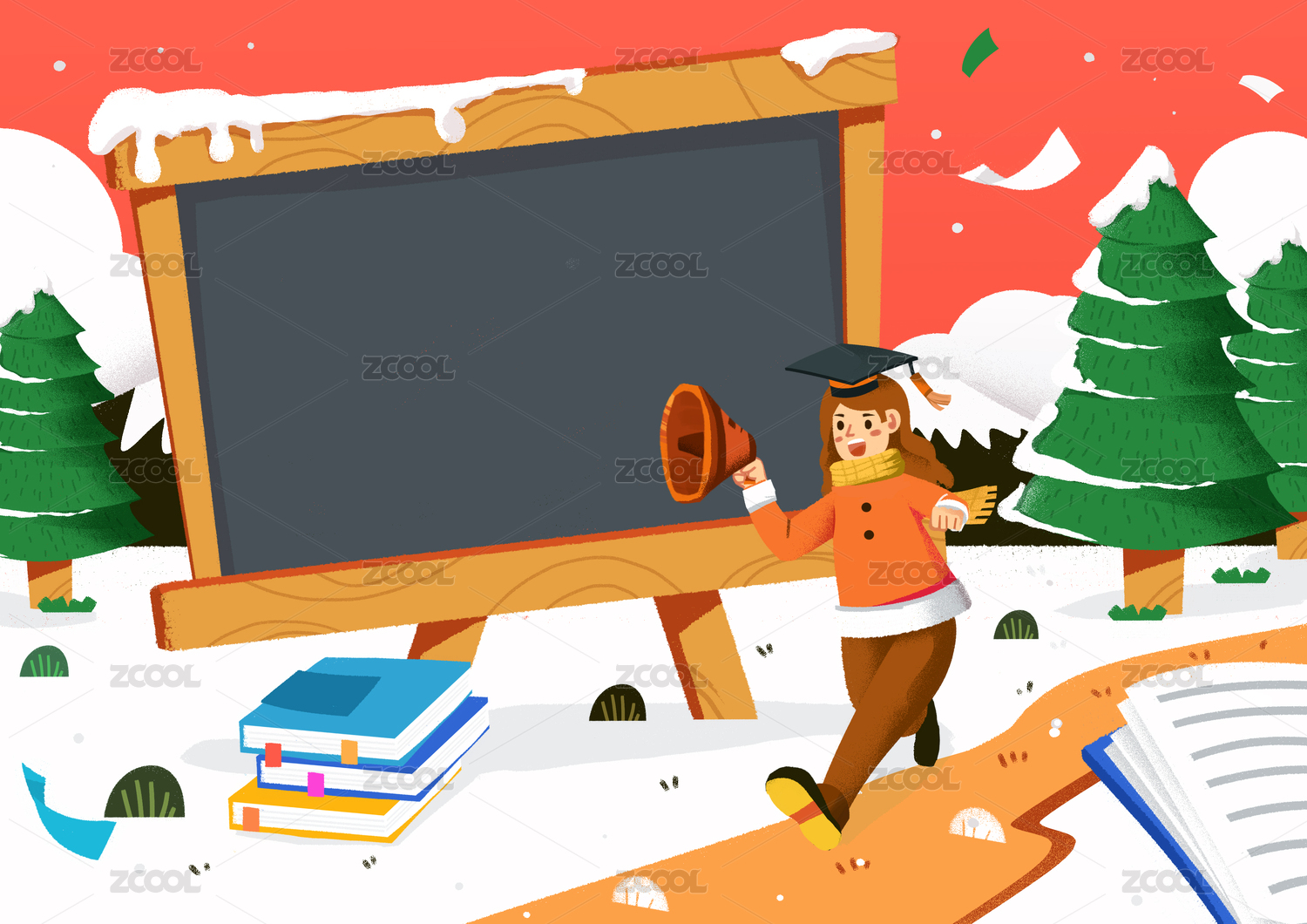 卡通手繪寒假補(bǔ)習(xí)教育專題海報(bào)插畫(huà)