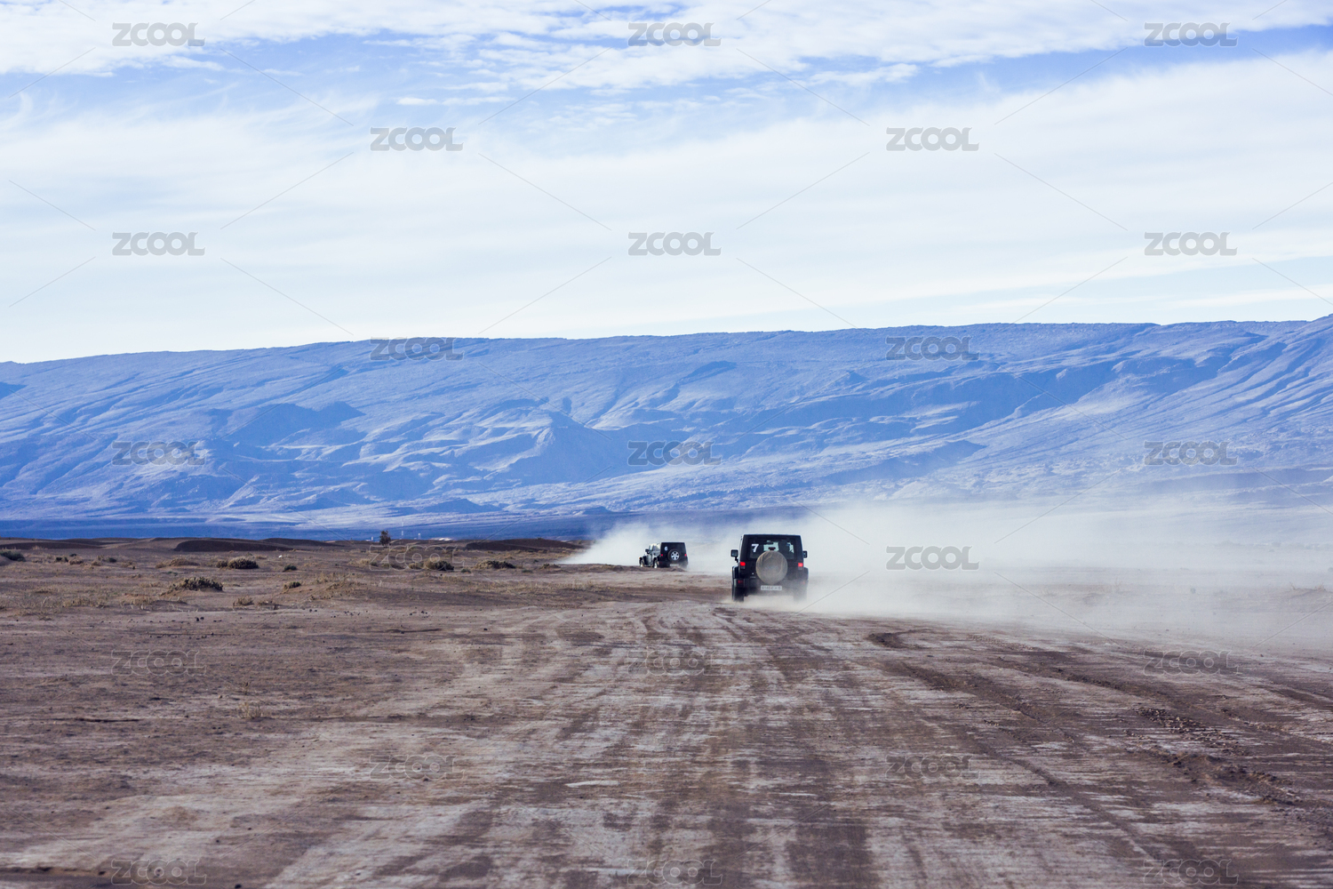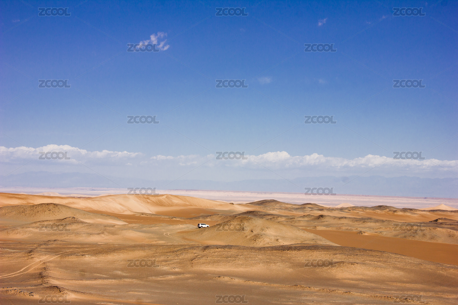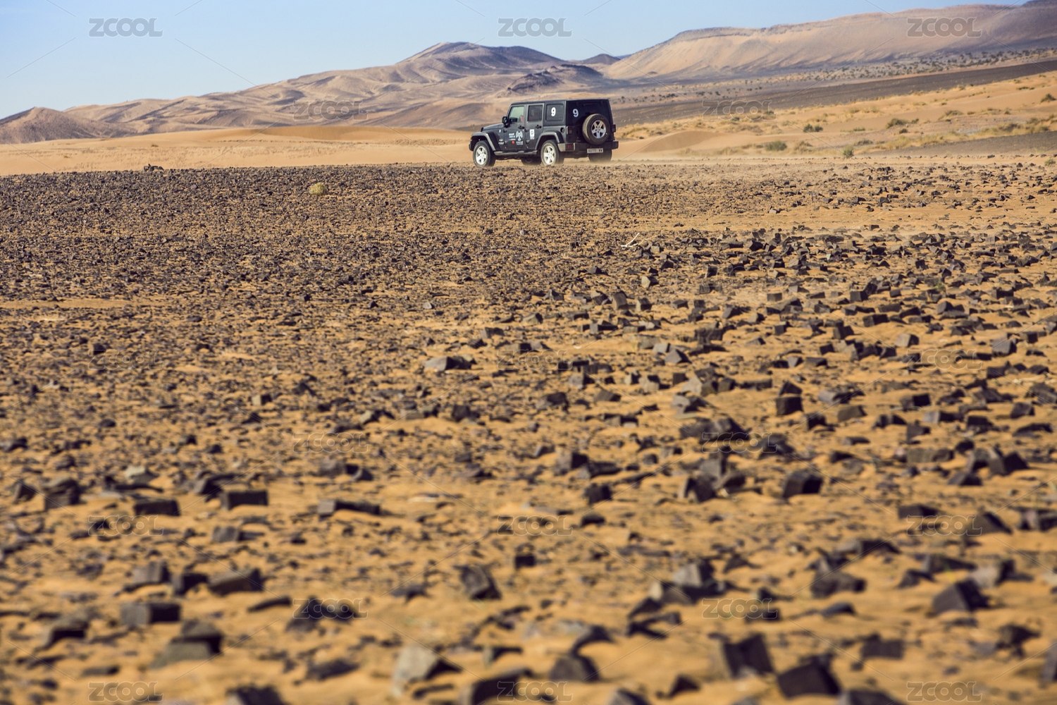 一輛越野車正在沙漠上行駛矢量扁平插畫