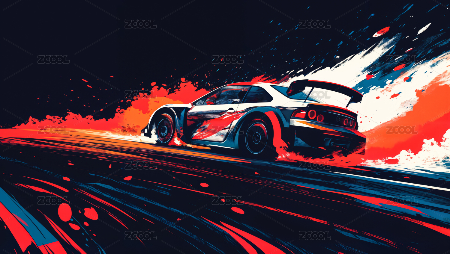漫畫風(fēng)格的汽車在公路上高速行駛